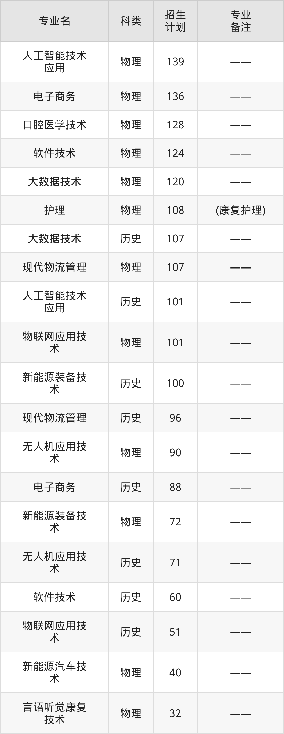 第二名:天津(961人),招生人数最多的专业是人工智能技术应用(165人、普通类)。