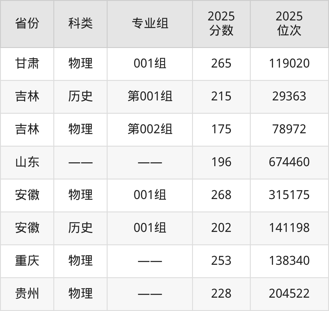 4、吉林:最低分175分,对应最低分专业组为物理类第002组,位次78972名;