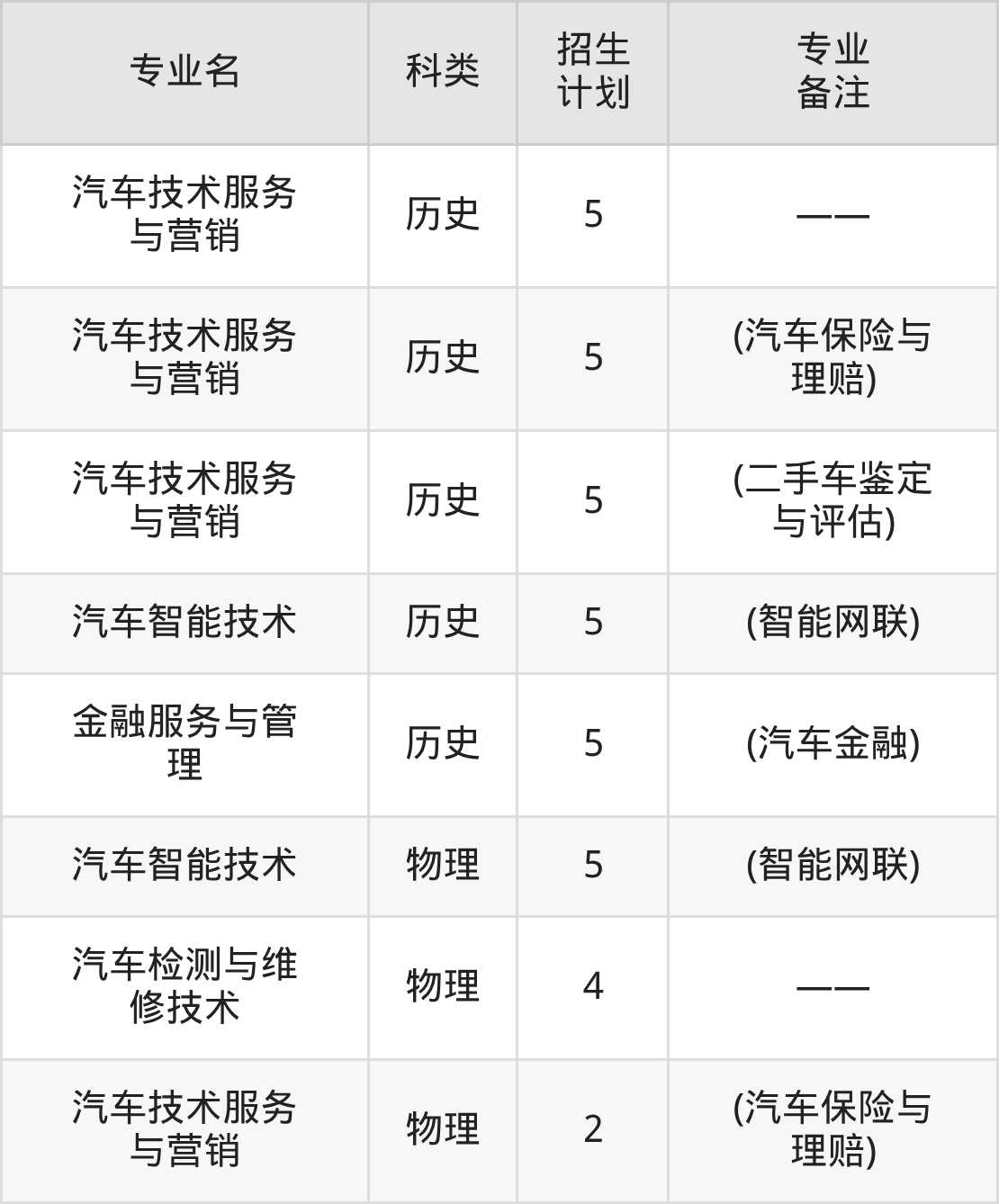 值得注意的是,天津滨海汽车工程职业学院在专科批招生,招生类型为物理类、历史类。篇幅有限,这里仅附上天津滨海汽车工程职业学院在河北省内招生计划详情: