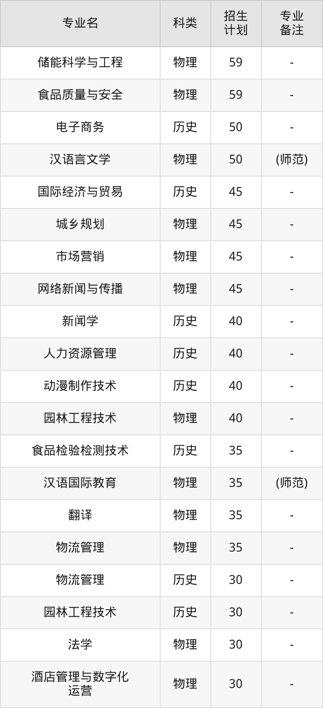 值得注意的是,新乡工程学院在本科批、专科批招生,招生类型为物理类、历史类。篇幅有限,这里仅附上新乡工程学院在河南省内招生计划详情: