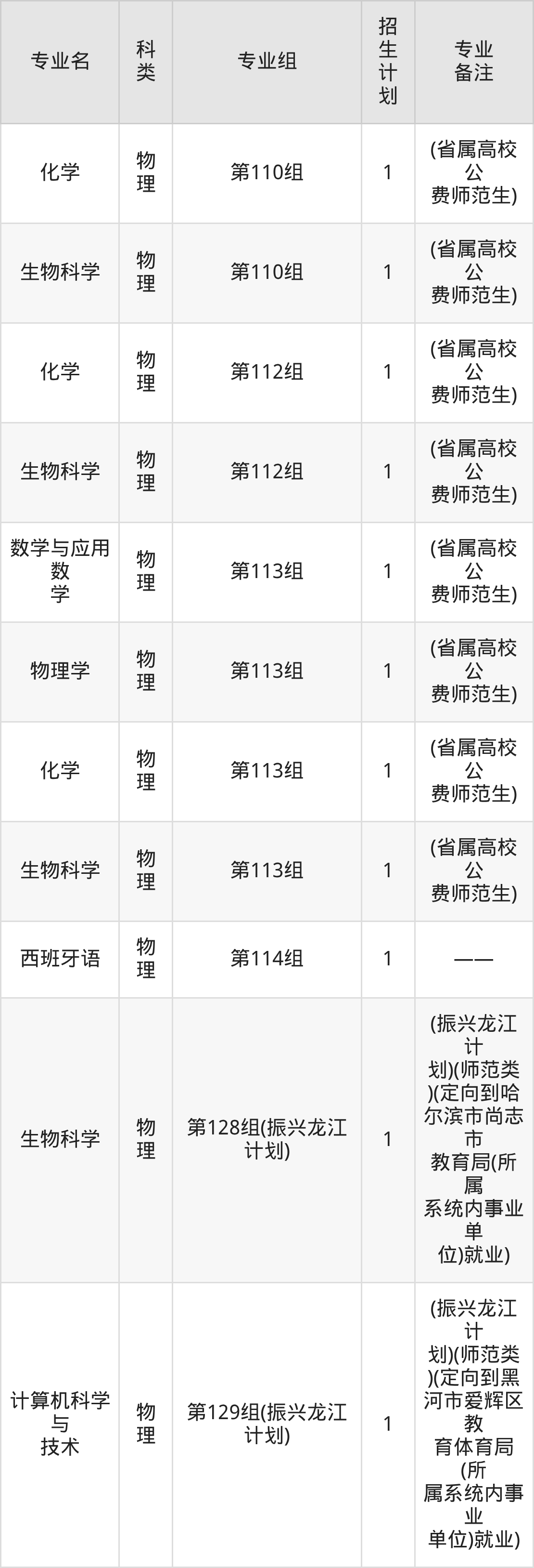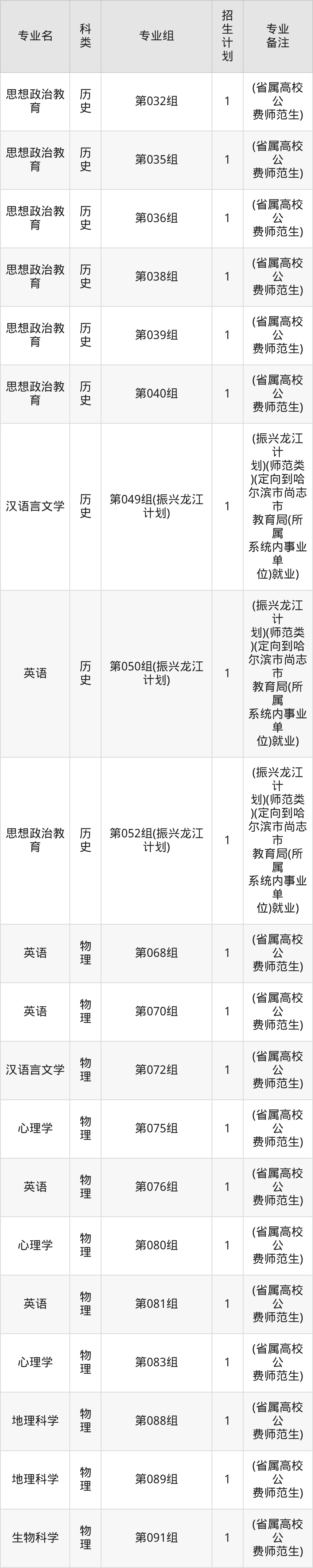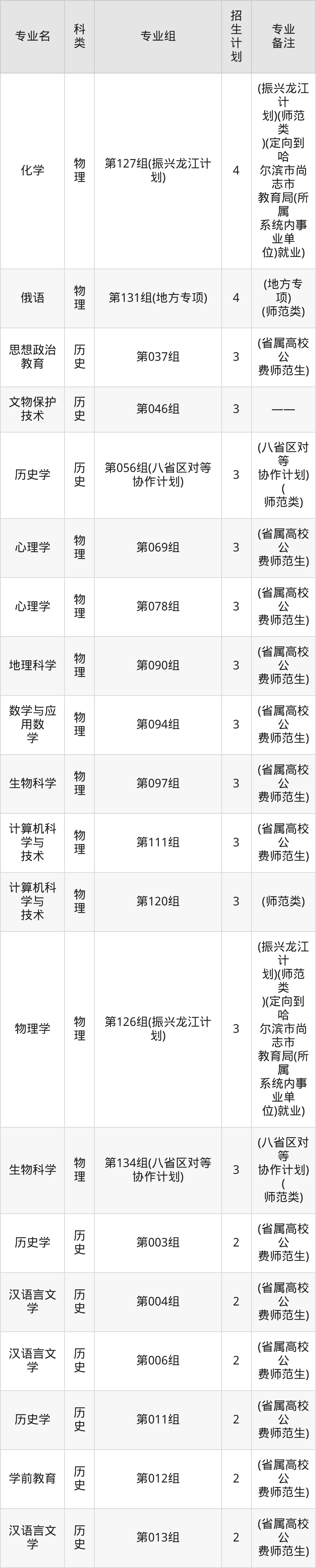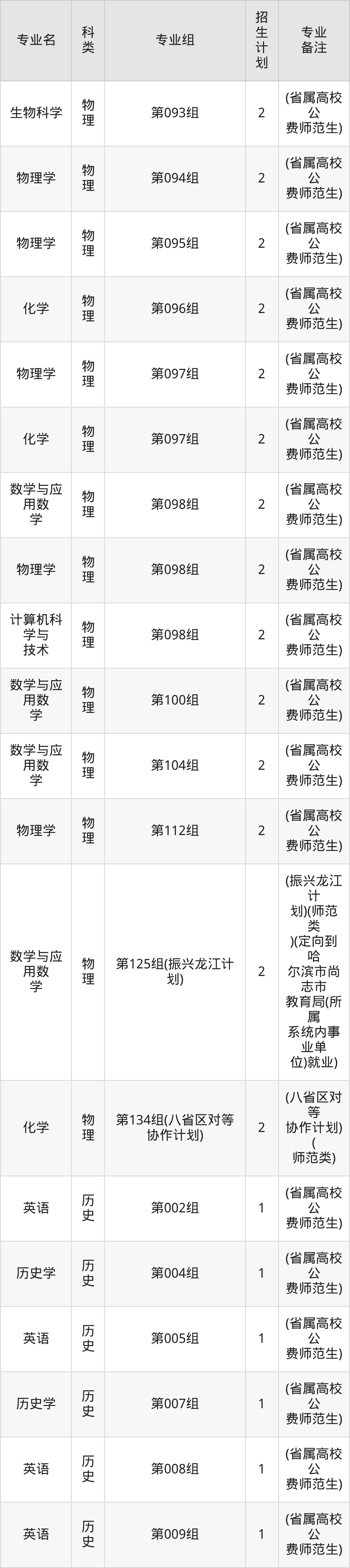 值得注意的是,哈尔滨师范大学在本科批、本科提前批招生,招生类型为历史类、物理类。篇幅有限,这里仅附上哈尔滨师范大学在黑龙江省内招生计划详情: