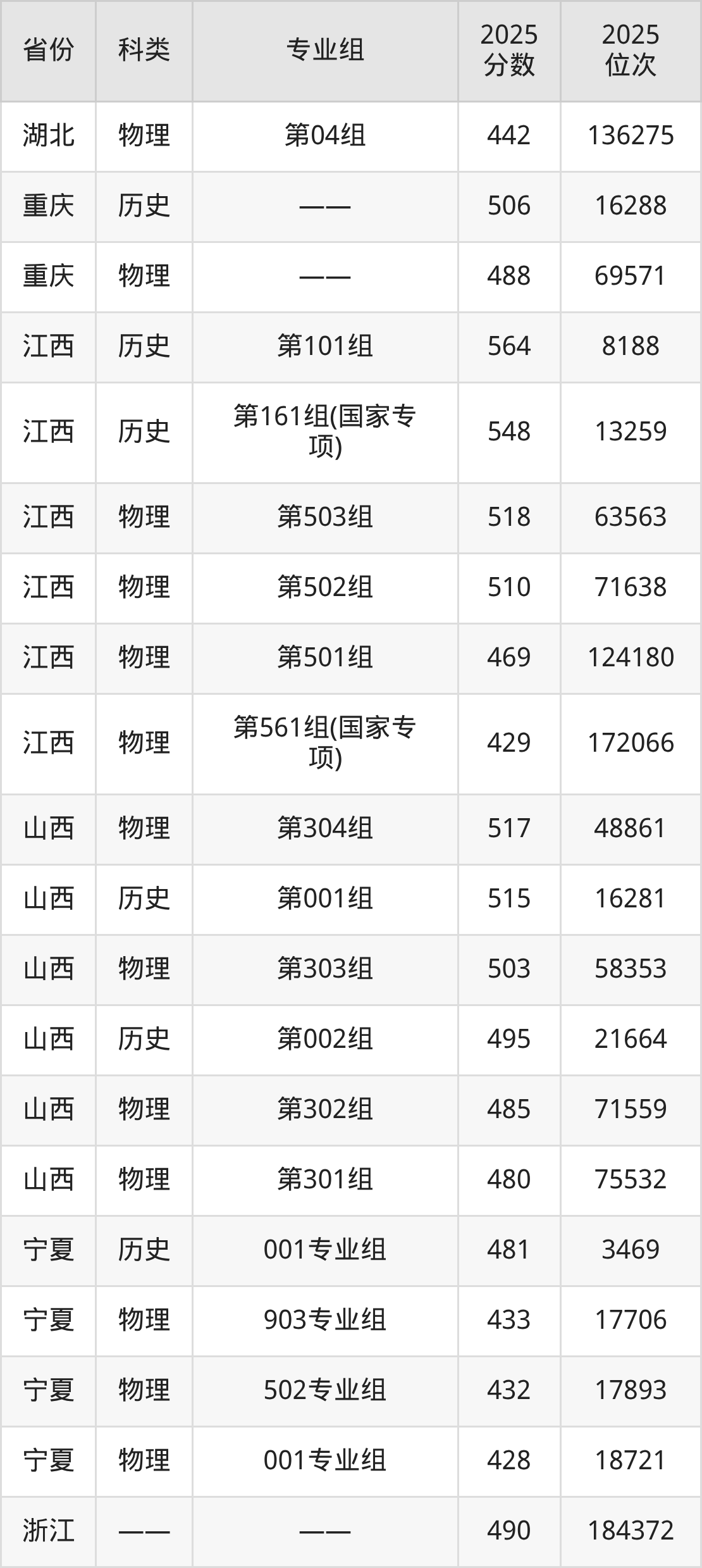 5、宁夏:最低分428分,对应最低分专业组为物理类001专业组,位次18721名;