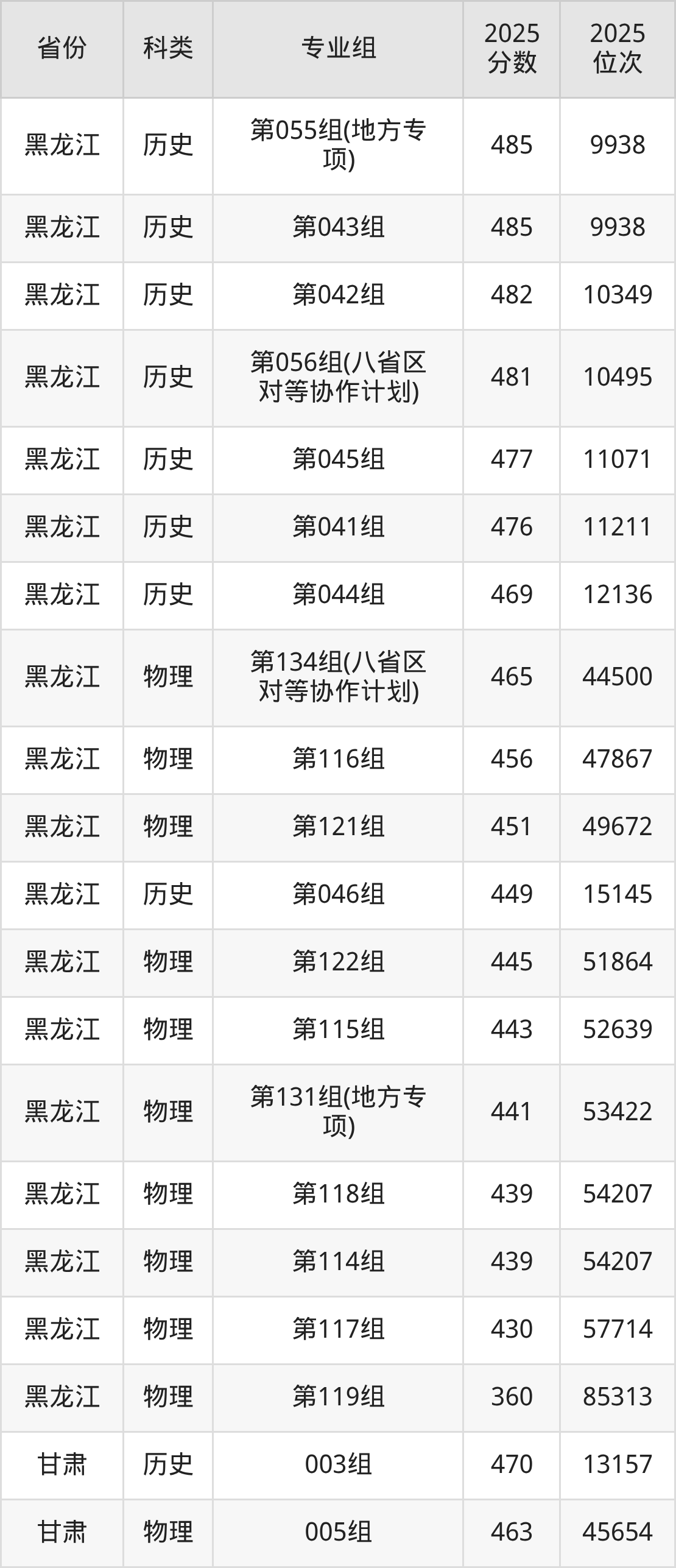 除上述省份外,哈尔滨师范大学2025各省录取最低分详情见下: