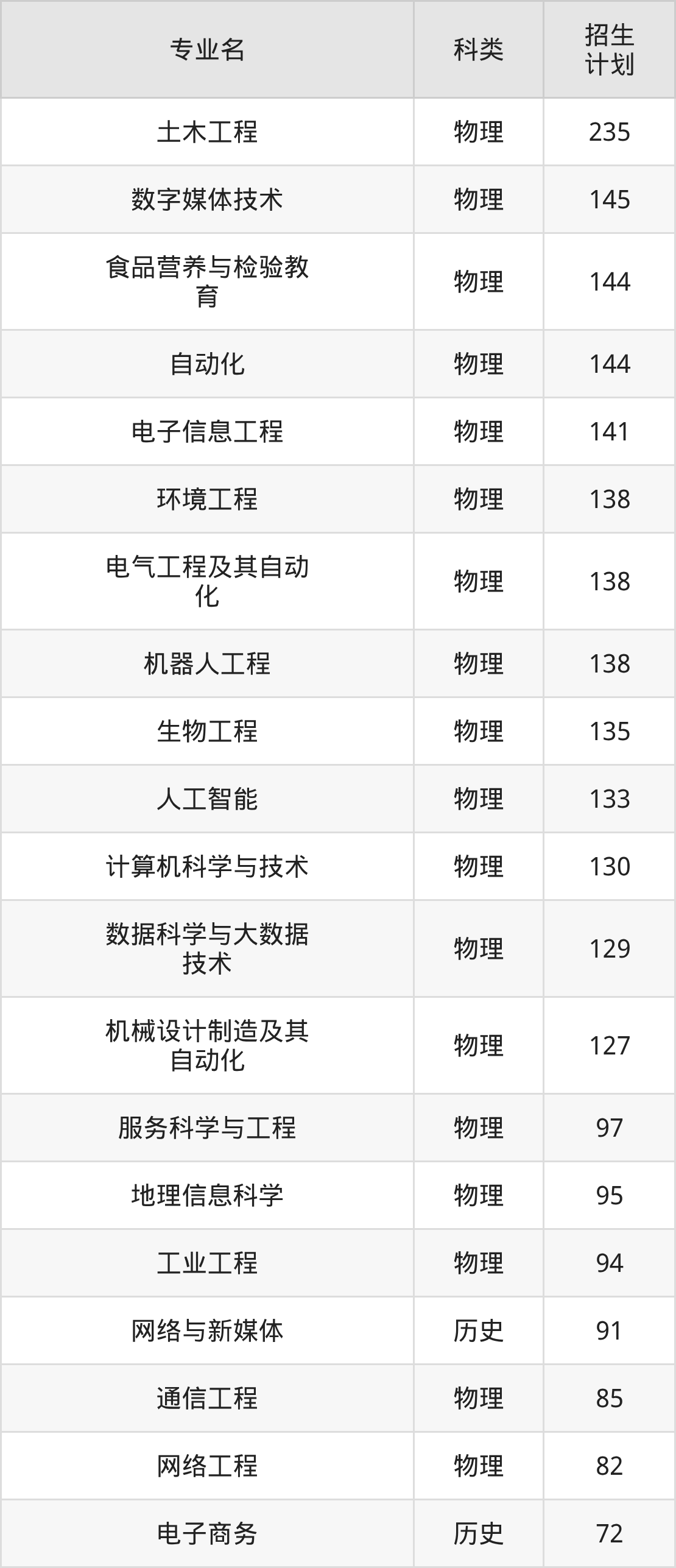 第一名:贵州(3166人),招生人数最多的专业是土木工程(235人、物理类)。