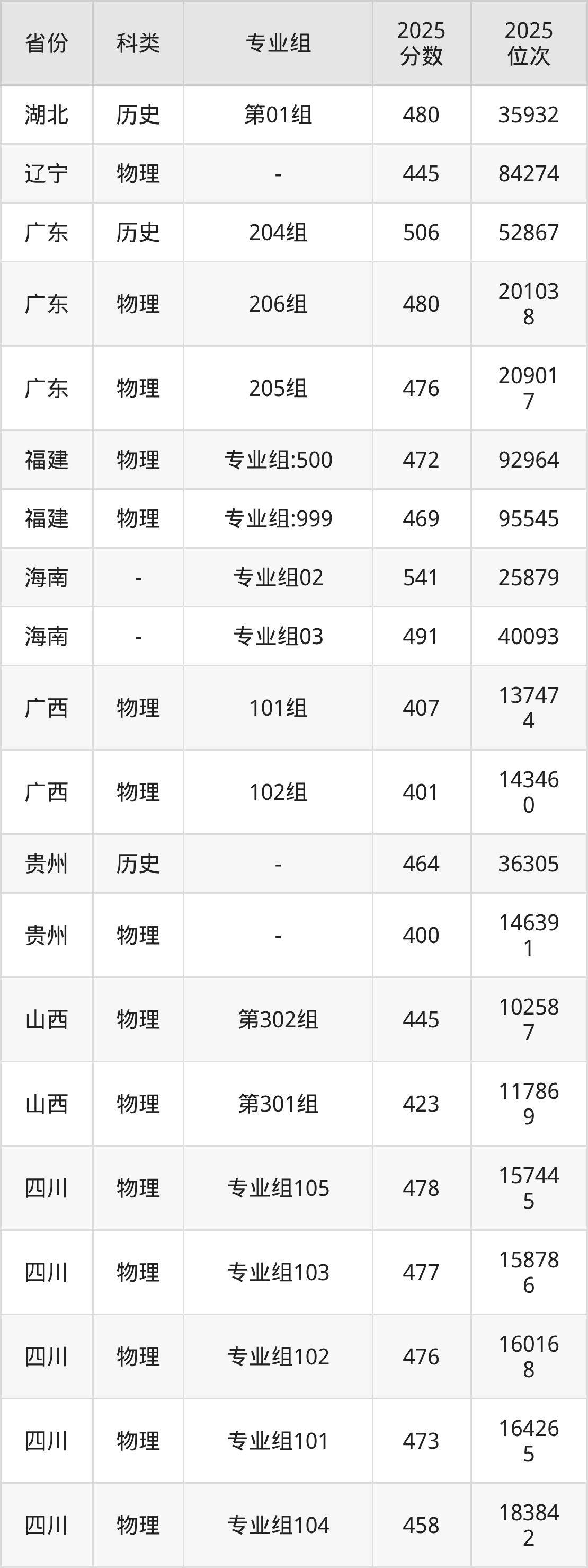 除上述省份外,贵阳信息科技学院2025各省录取最低分详情见下:
