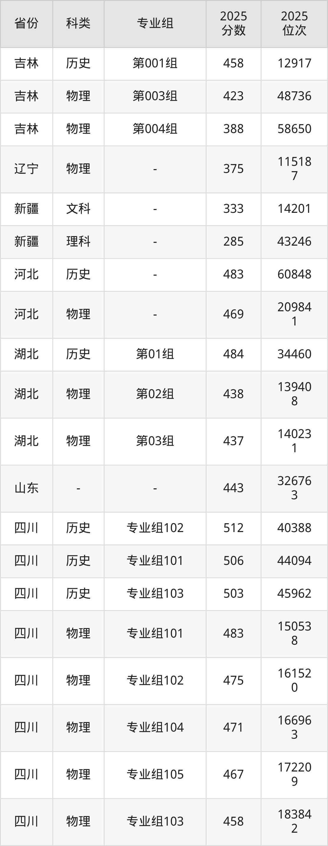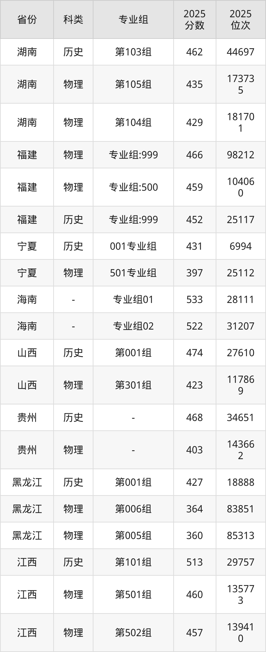 除上述省份外,云南经济管理学院2025各省录取最低分详情见下: