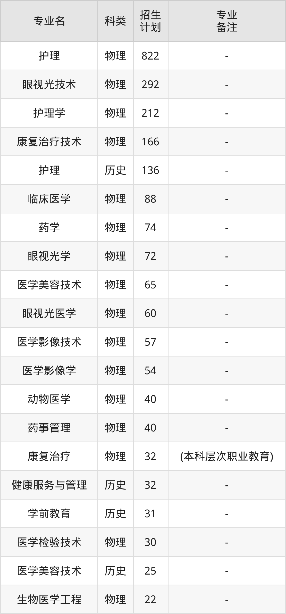 第二名:河南(201人),招生人数最多的专业是护理(30人、物理类)。