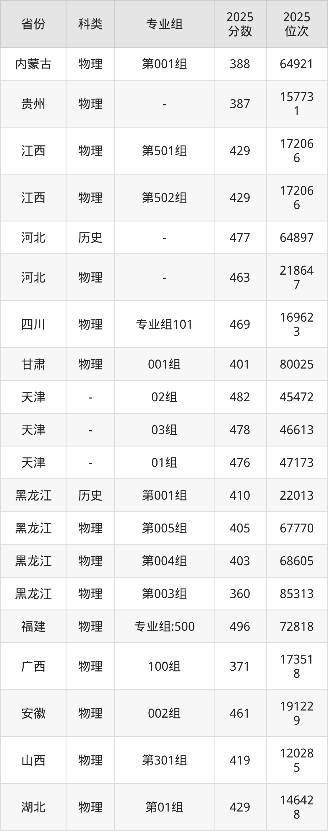 2、黑龙江:最低分360分,对应最低分专业组为物理类第003组,位次85313名;