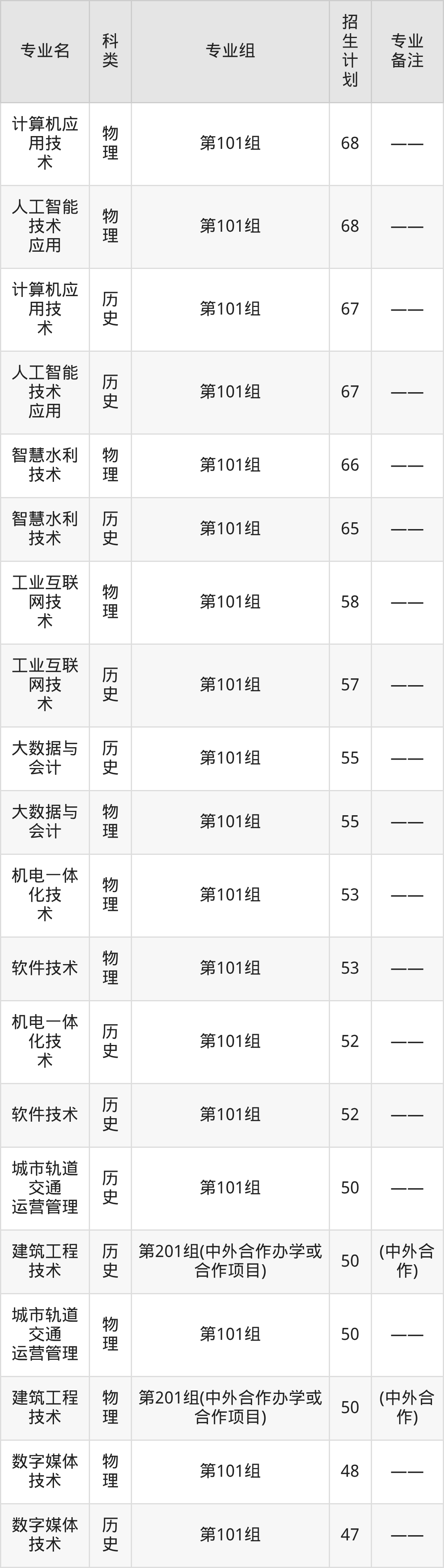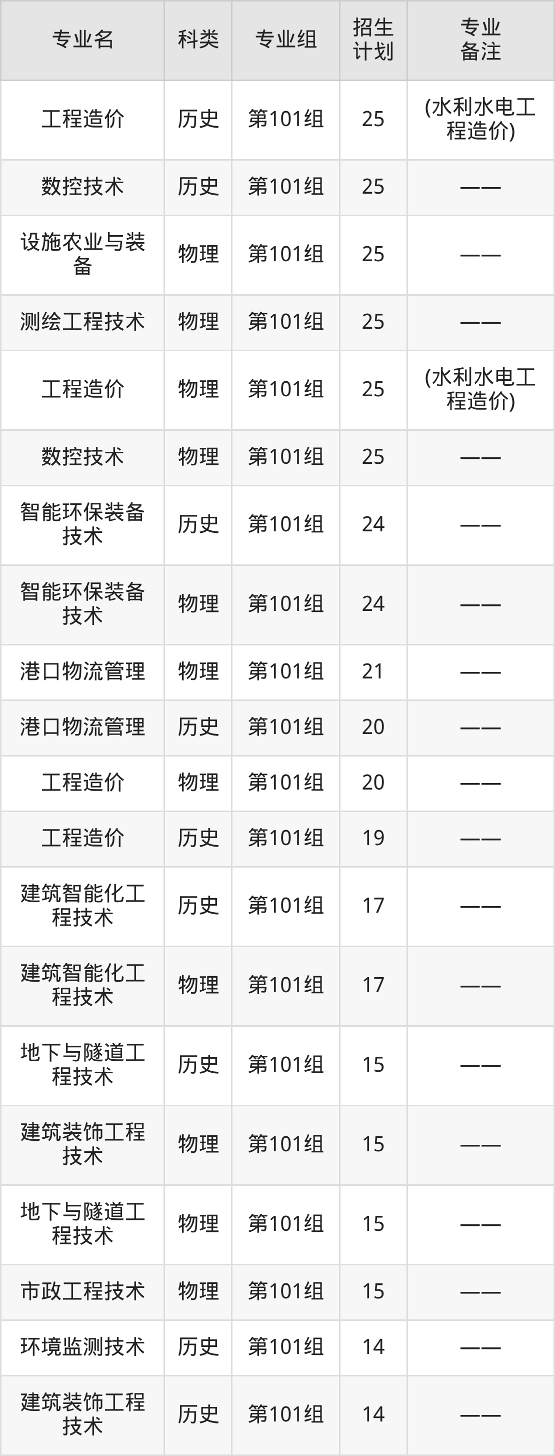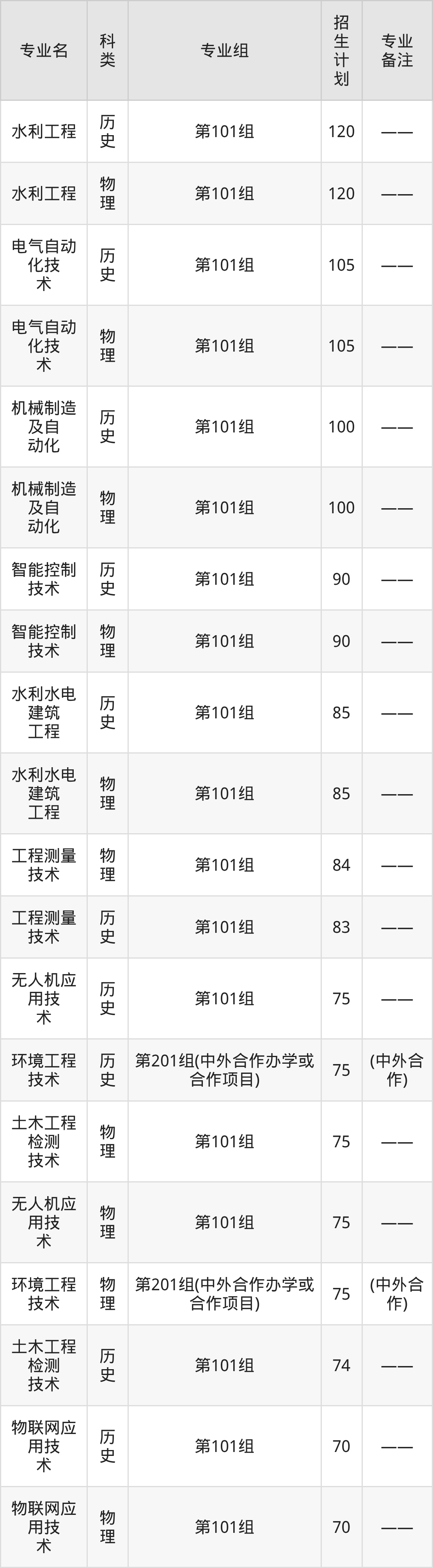 值得注意的是,河南水利与环境职业学院在专科批招生,招生类型为历史类、物理类。篇幅有限,这里仅附上河南水利与环境职业学院在河南省内招生计划详情: