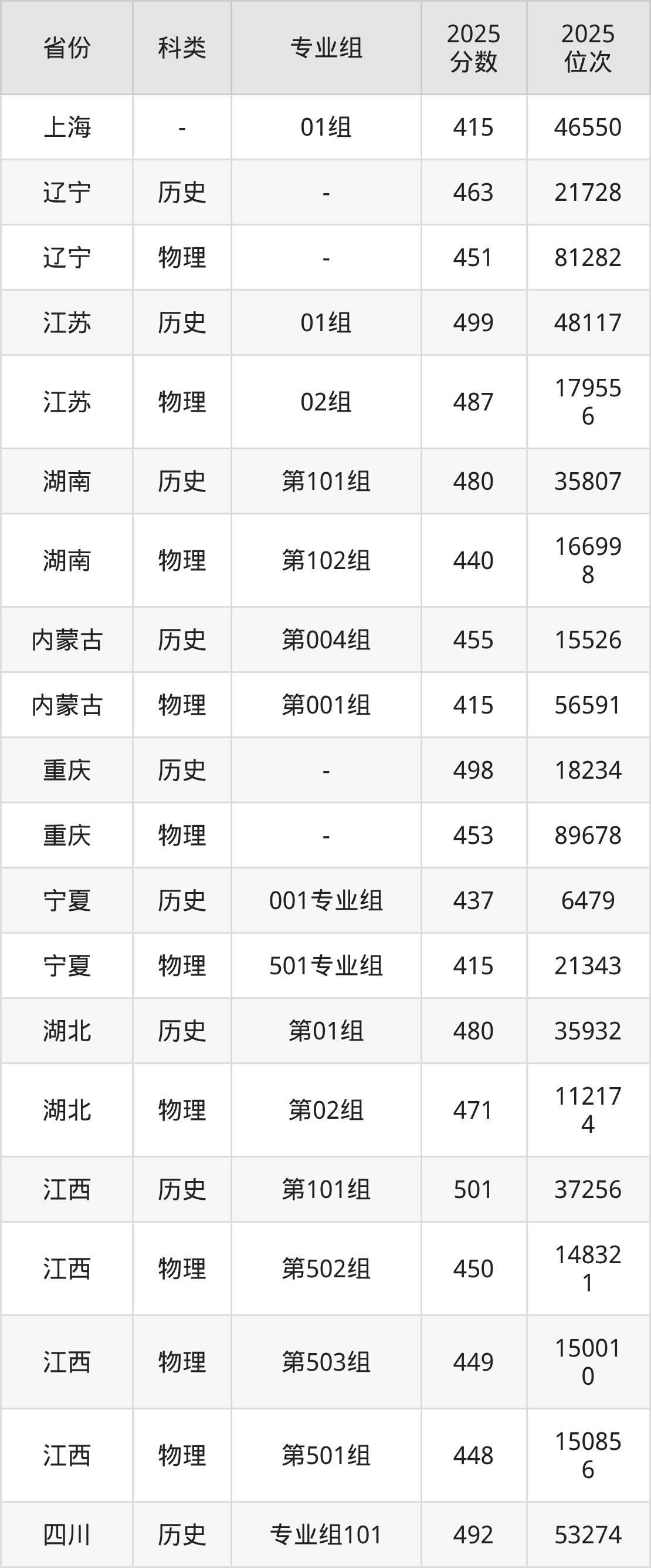 除上述省份外,江西工程学院2025各省录取最低分详情见下: