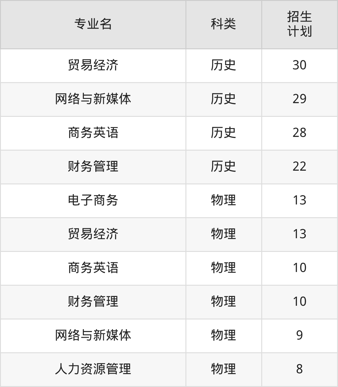 第三名:广东(34人),招生人数最多的专业是商务英语(2人、历史类)。