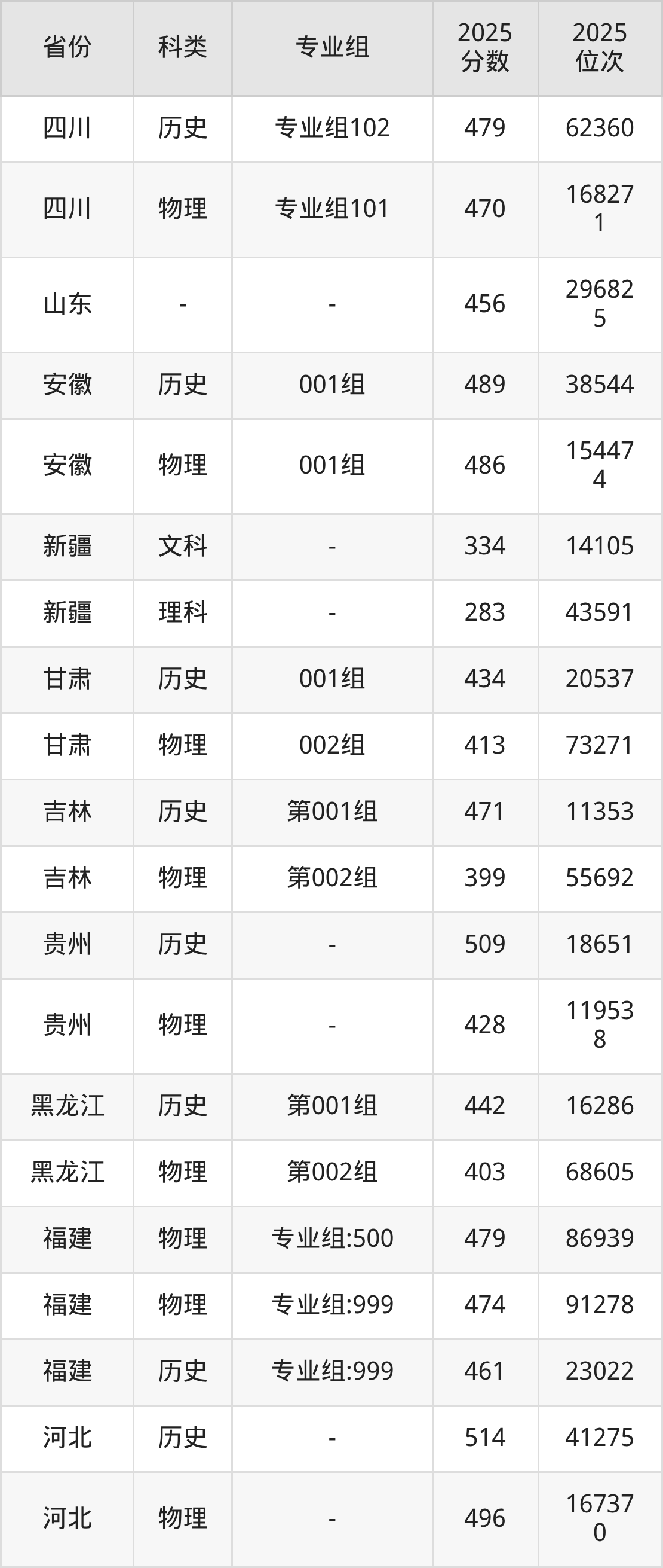 4、甘肃:最低分413分,对应最低分专业组为物理类002组,位次73271名;