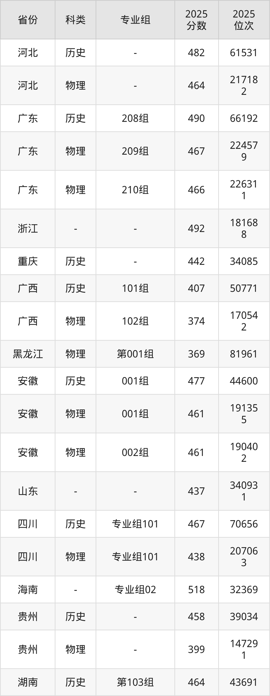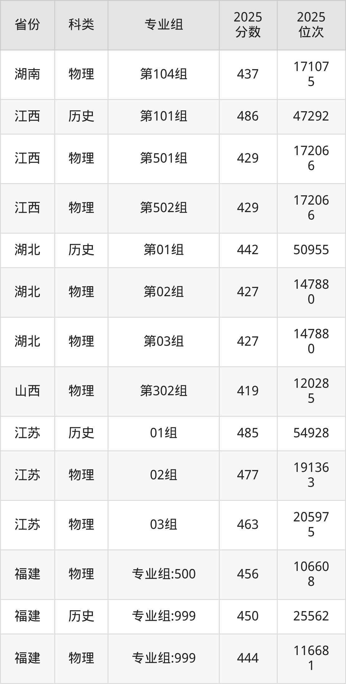 除上述省份外,江西服装学院2025各省录取最低分详情见下: