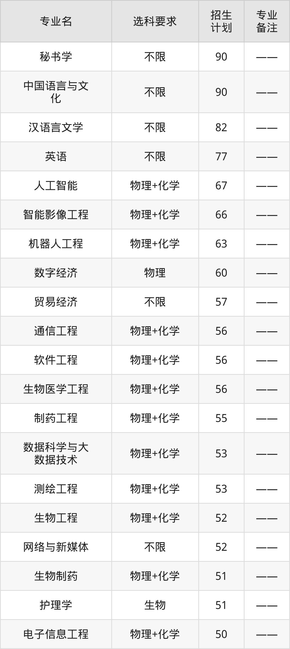 齐鲁理工学院2025全国各省招生计划详情见下: