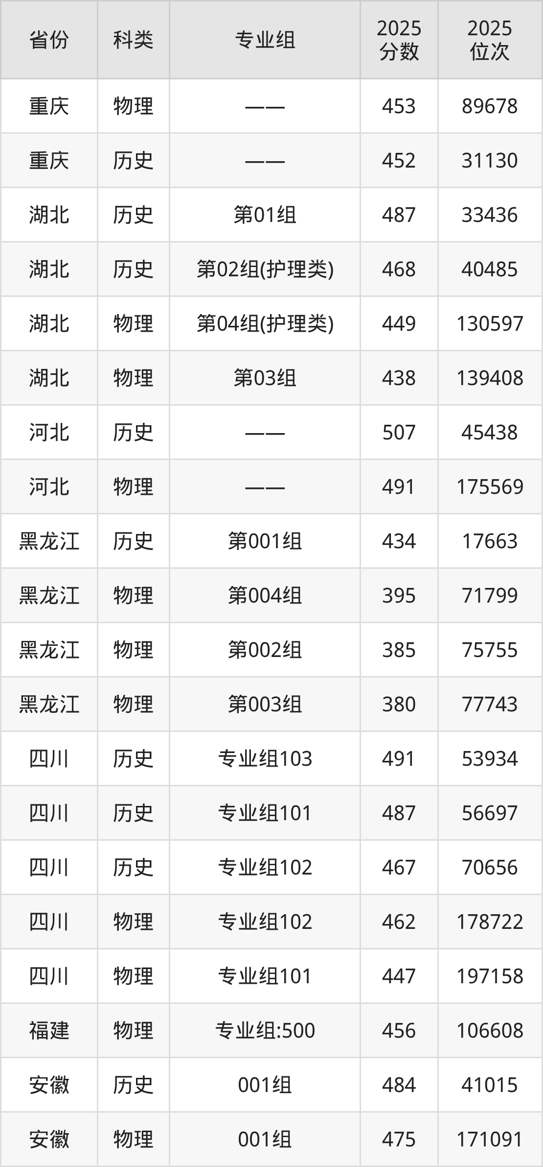 2、黑龙江:最低分380分,对应最低分专业组为物理类第003组,位次77743名;