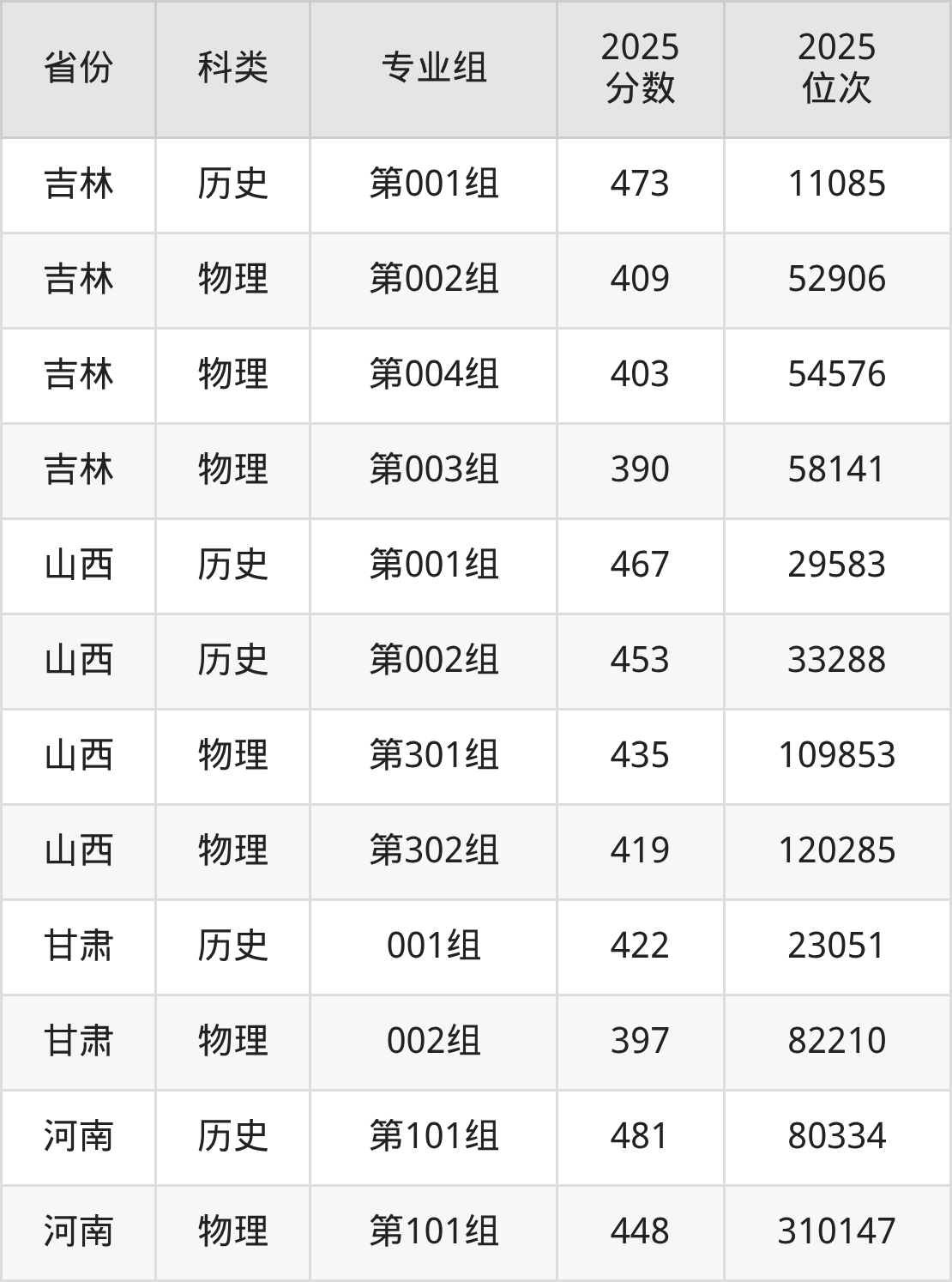 3、吉林:最低分390分,对应最低分专业组为物理类第003组,位次58141名;