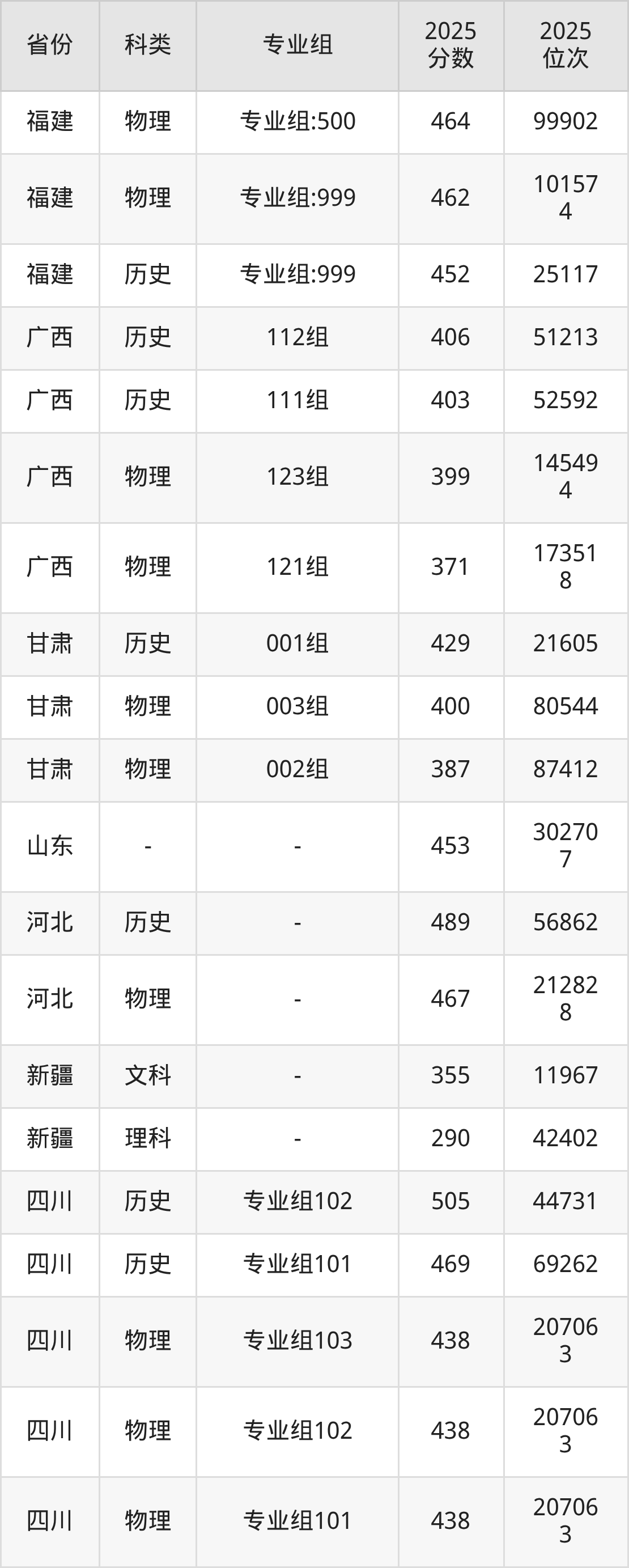 3、广西:最低分371分,对应最低分专业组为物理类121组,位次173518名;