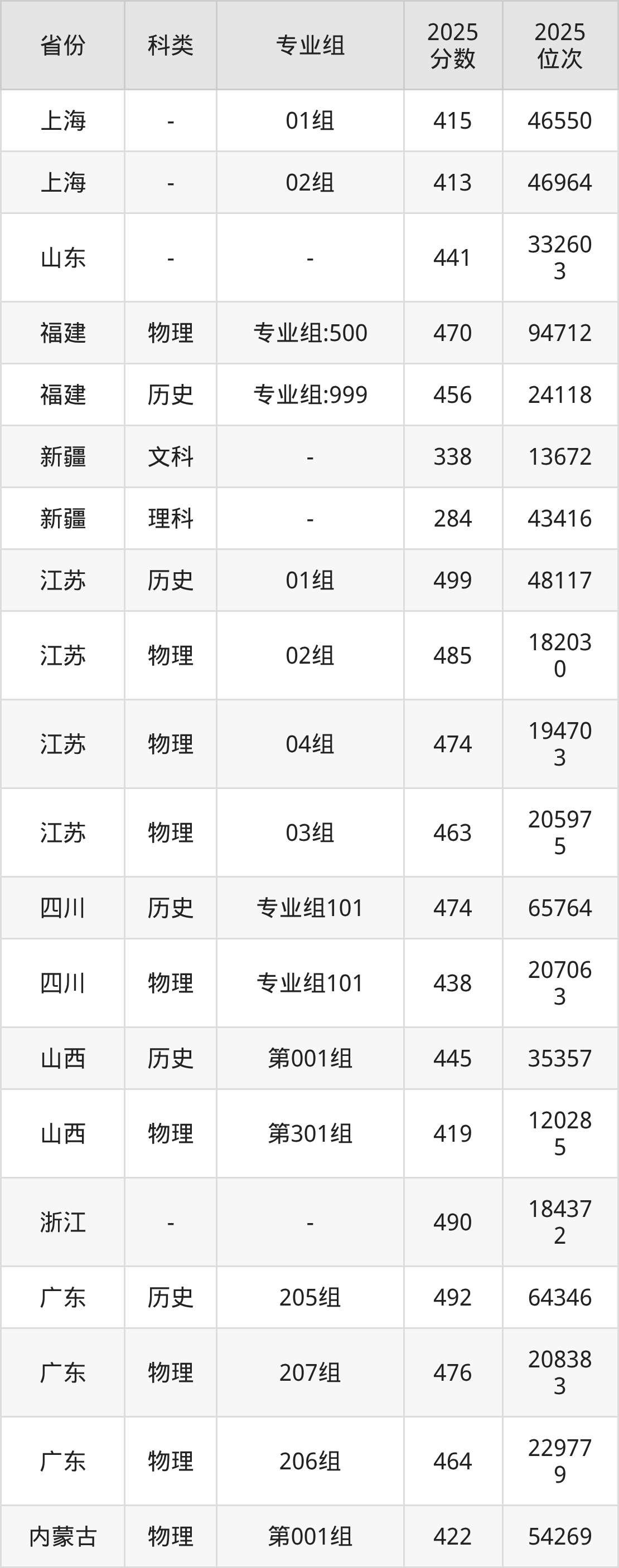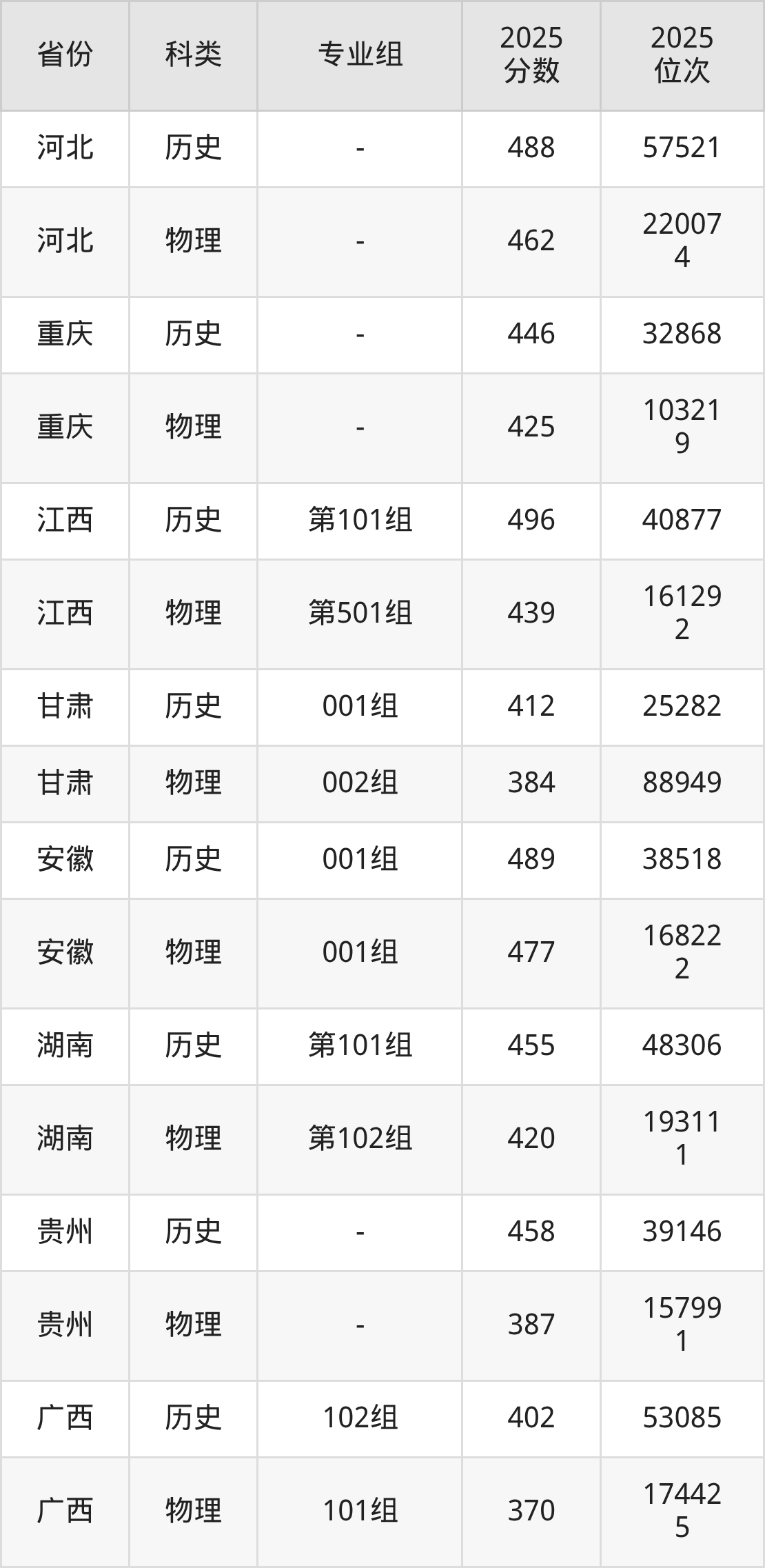 3、甘肃:最低分384分,对应最低分专业组为物理类002组,位次88949名;