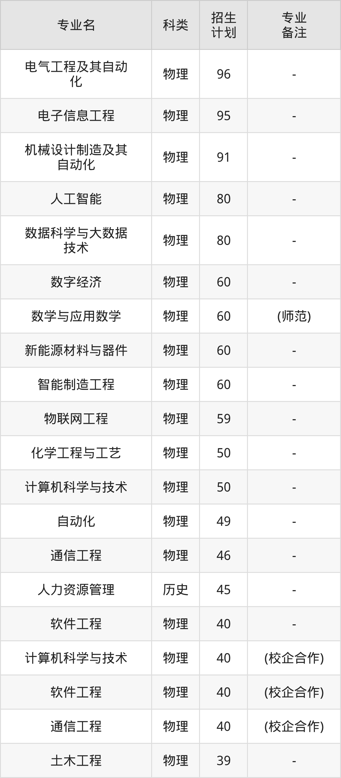 一、淮北理工学院2025全国招生计划表