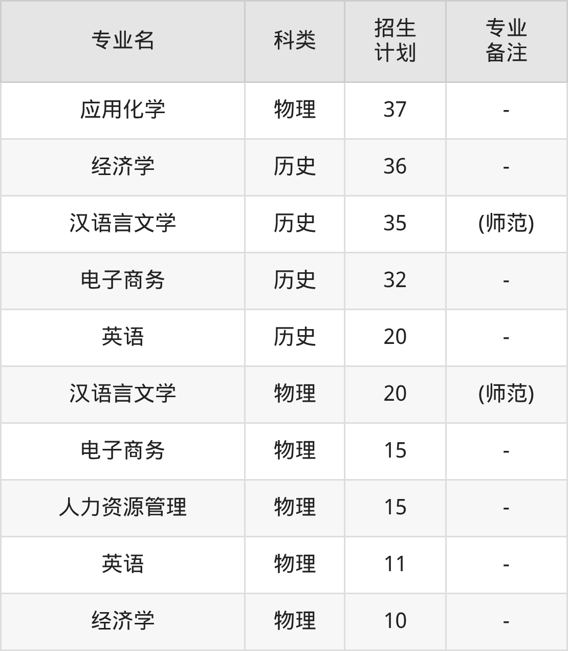 第三名:河南(20人),招生人数最多的专业是汉语言文学(4人、历史类,(师范))。