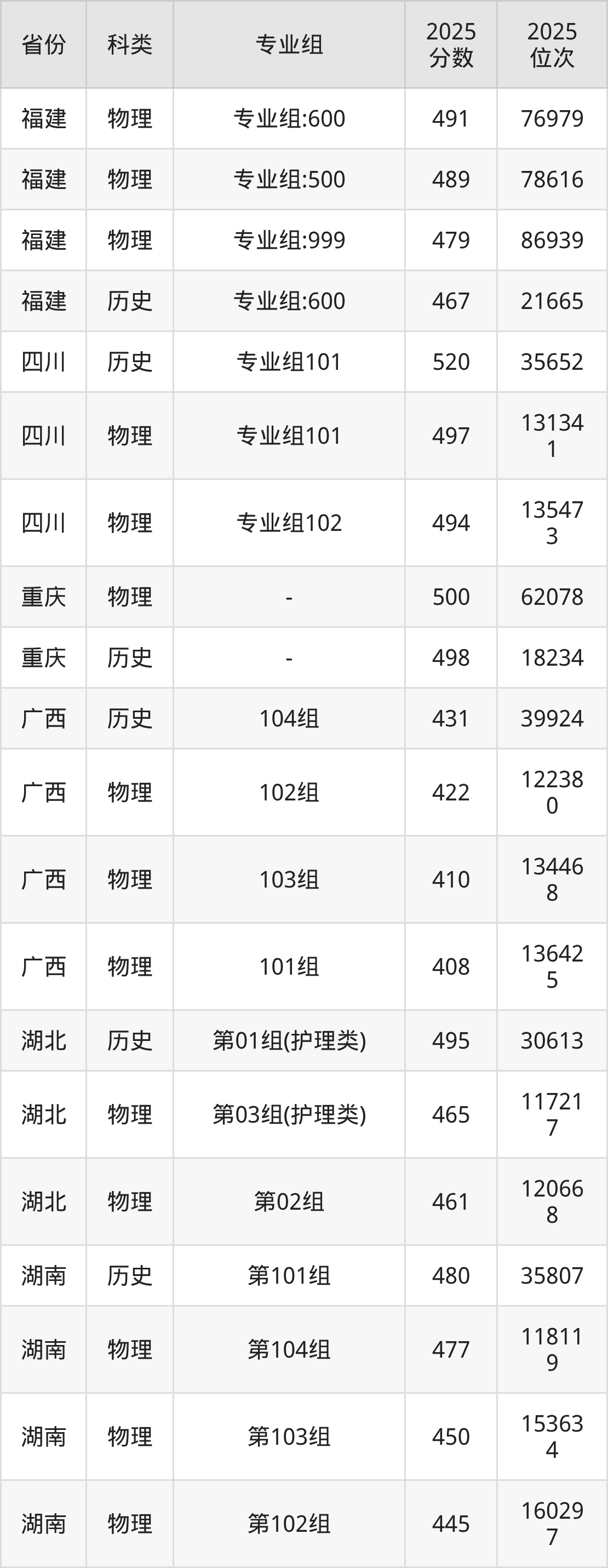 除上述省份外,贵州医科大学神奇民族医药学院2025各省录取最低分详情见下: