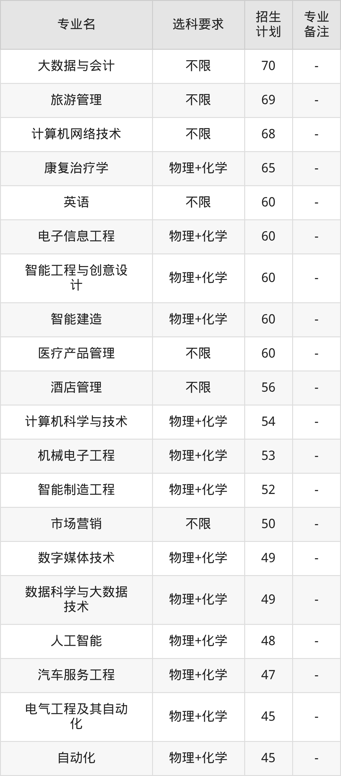 第三名:甘肃(215人),招生人数最多的专业是建筑工程技术(35人、历史类)。
