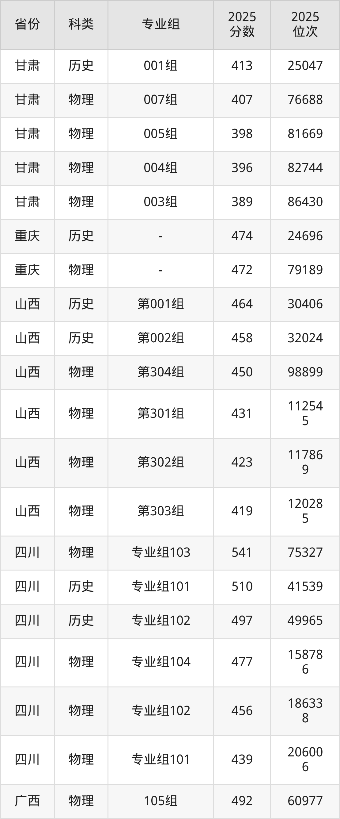 5、甘肃:最低分389分,对应最低分专业组为物理类003组,位次86430名;