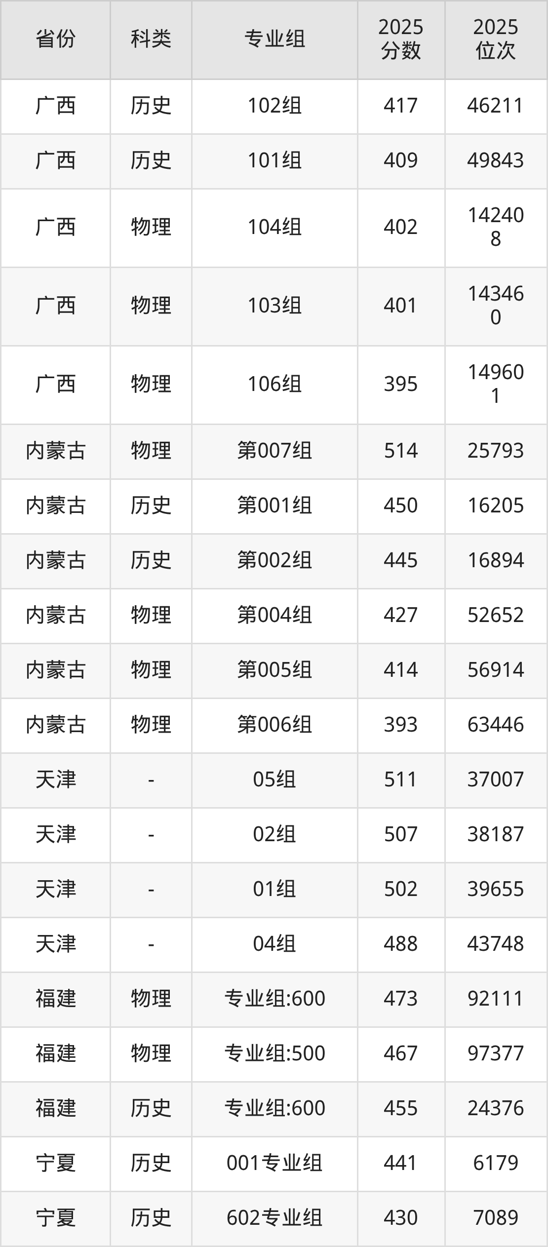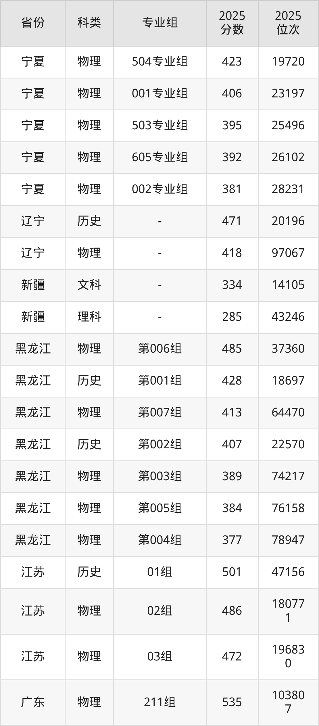 3、宁夏:最低分381分,对应最低分专业组为物理类002专业组,位次28231名;