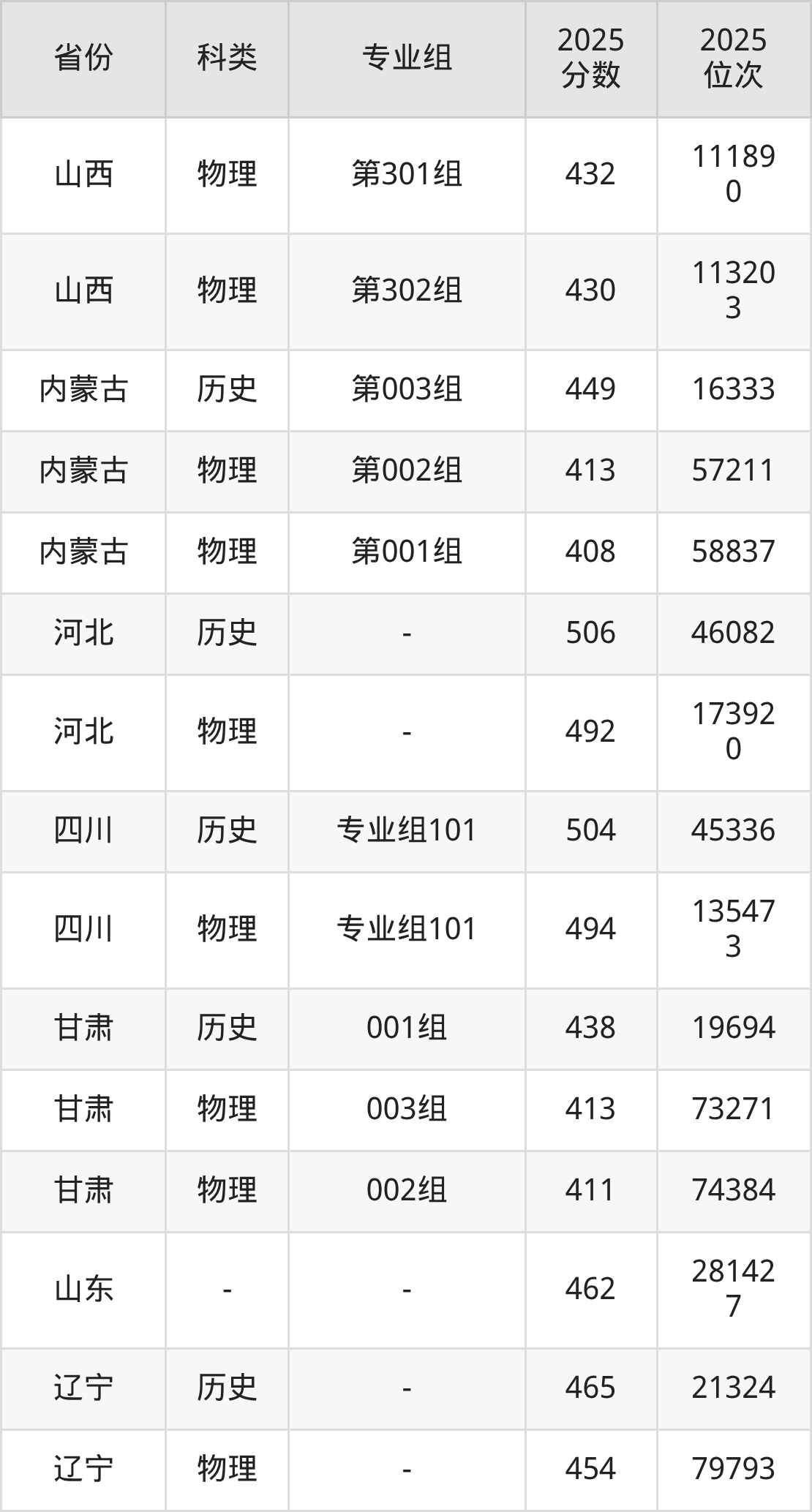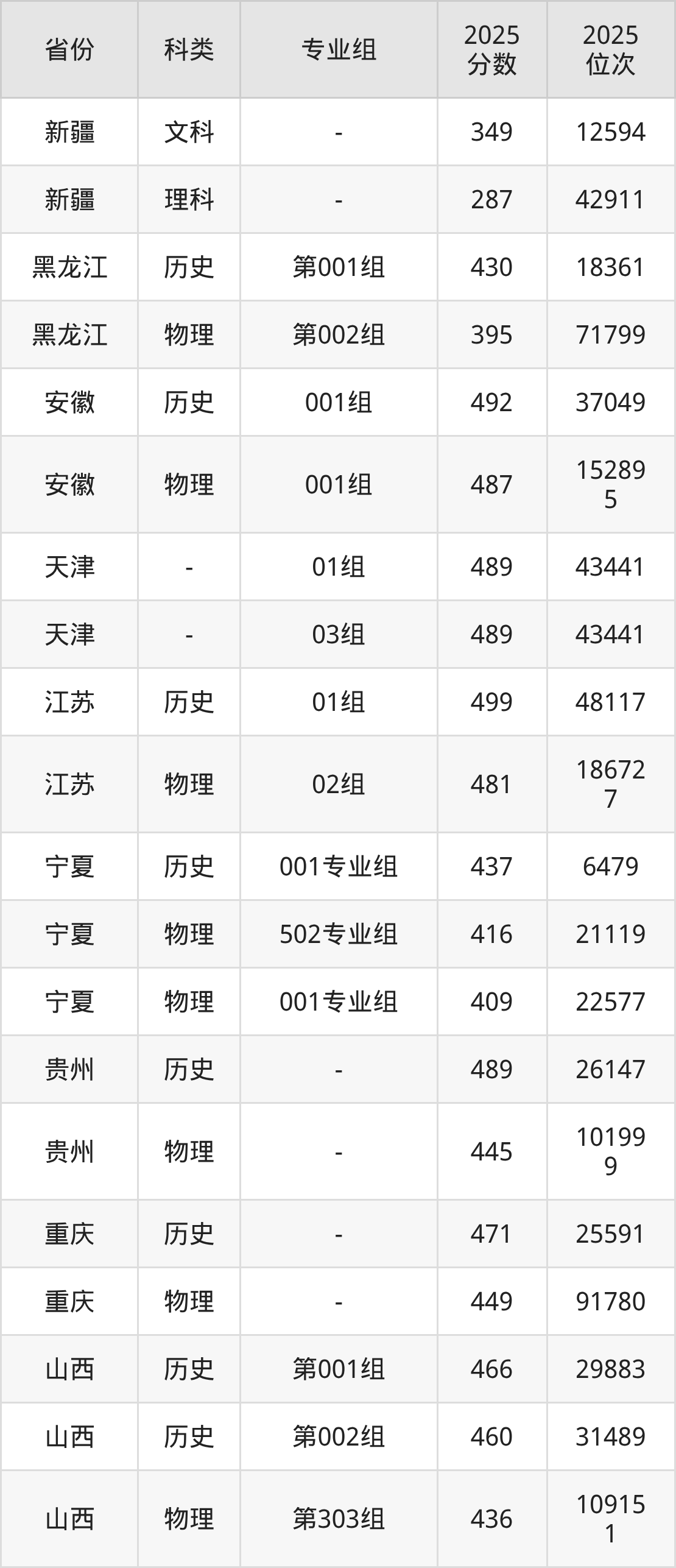 除上述省份外,晋中信息学院2025各省录取最低分详情见下: