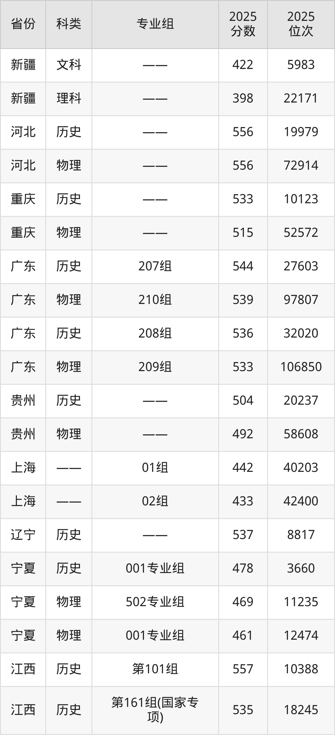 3、宁夏:最低分461分,对应最低分专业组为物理类001专业组,位次12474名;