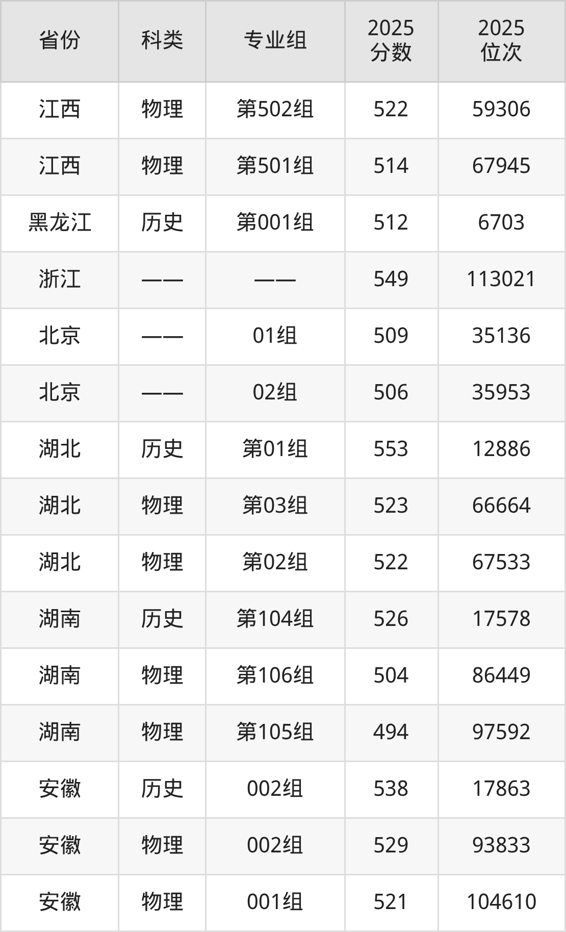 贵州最低492分、湖南最低494分、北京最低506分、山西最低511分、黑龙江最低512分、江西最低514分、重庆最低515分、福建最低521分、安徽最低521分、湖北最低522分、四川最低524分、山东最低525分、内蒙古最低527分、广东最低533分、辽宁最低537分、河南最低546分、浙江最低549分、河北最低556分。