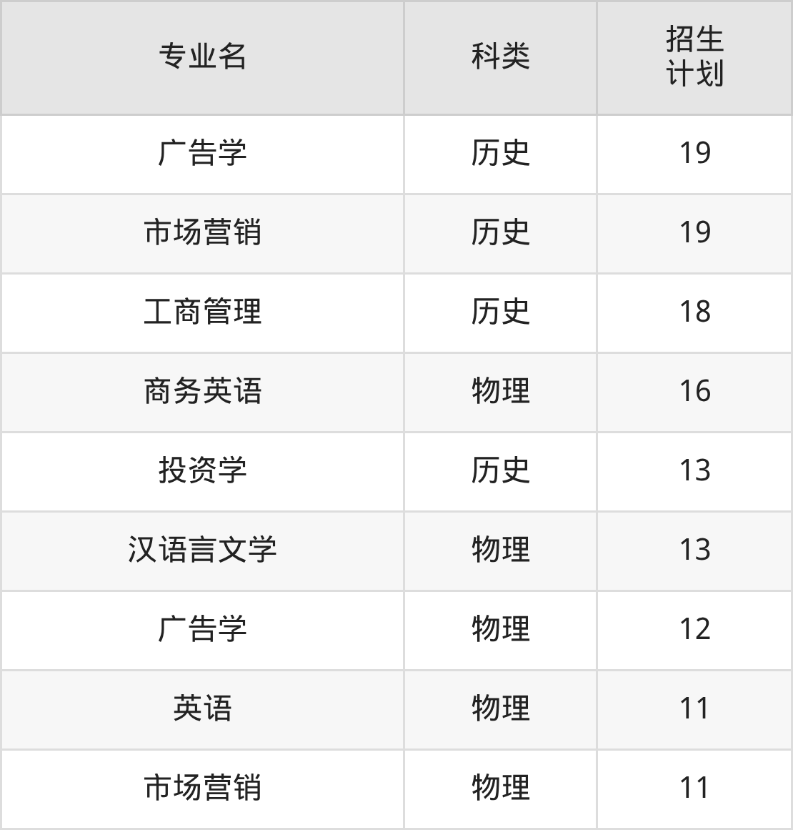 第二名:安徽(65人),招生人数最多的专业是英语(5人、历史类)。