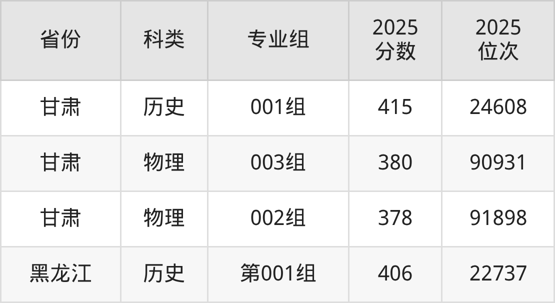3、甘肃:最低分378分,对应最低分专业组为物理类002组,位次91898名;