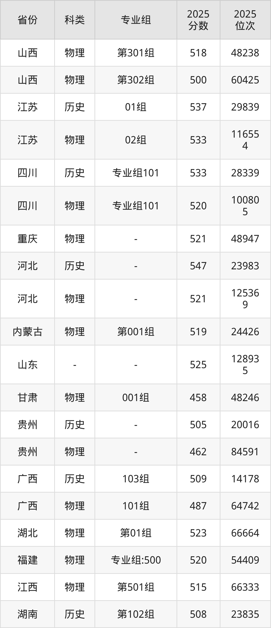 除上述省份外,湖州学院2025各省录取最低分详情见下:
