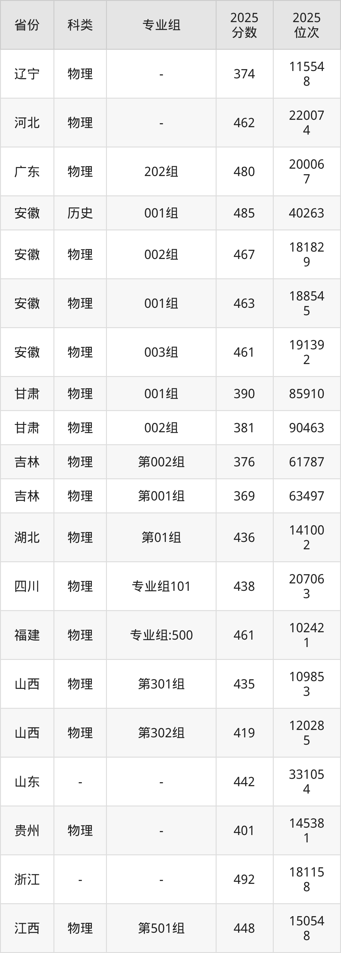 除上述省份外,皖江工学院2025各省录取最低分详情见下: