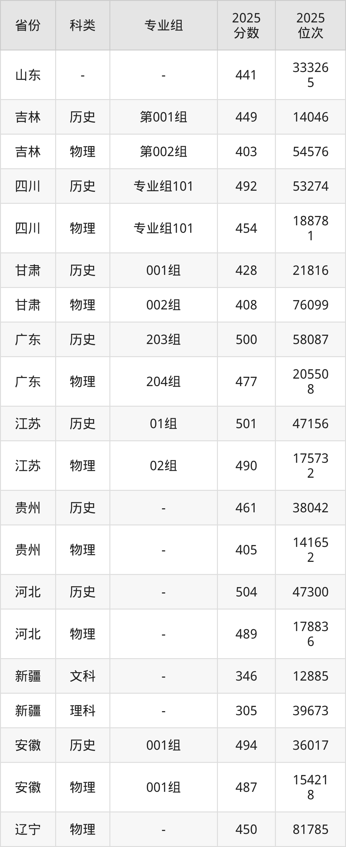 除上述省份外,烟台理工学院2025各省录取最低分详情见下: