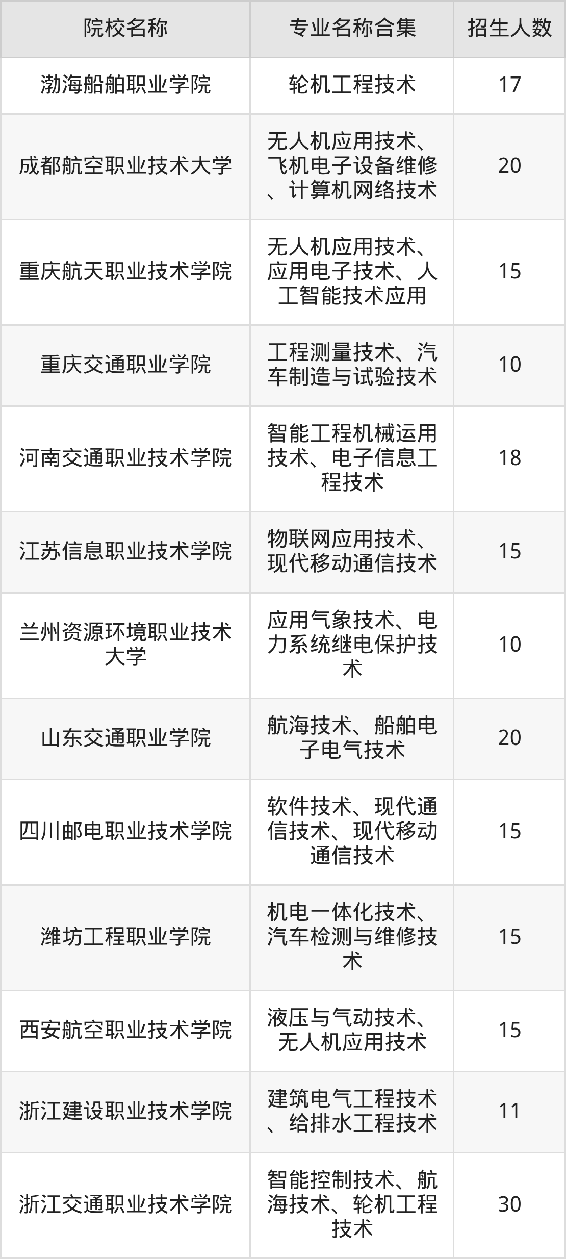 山东:滨州职业学院、山东信息职业技术学院、泰山职业技术学院、威海职业学院、山东交通职业学院、潍坊工程职业学院