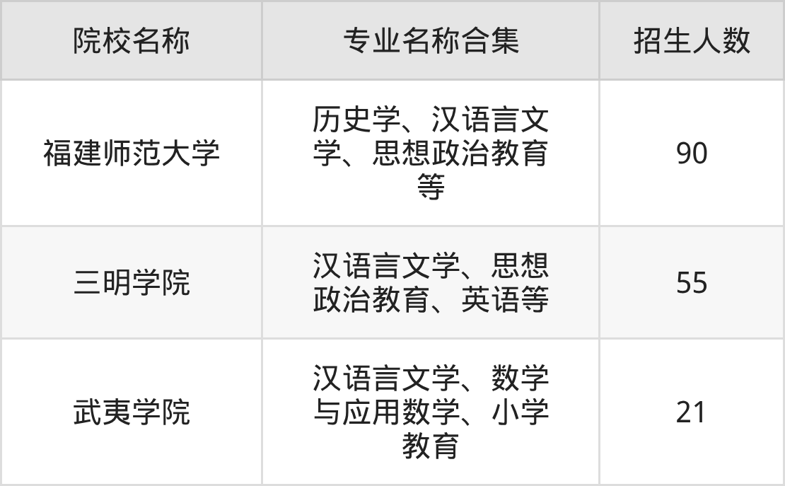 其中,福建师范大学以90人招生规模居首,三明学院55人紧随其后,武夷学院招21人。