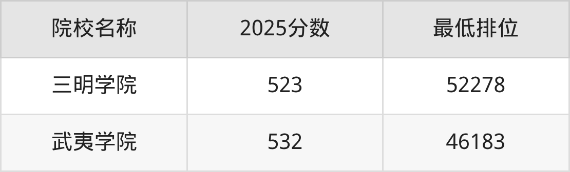第一梯队(520分+):武夷学院(526分)