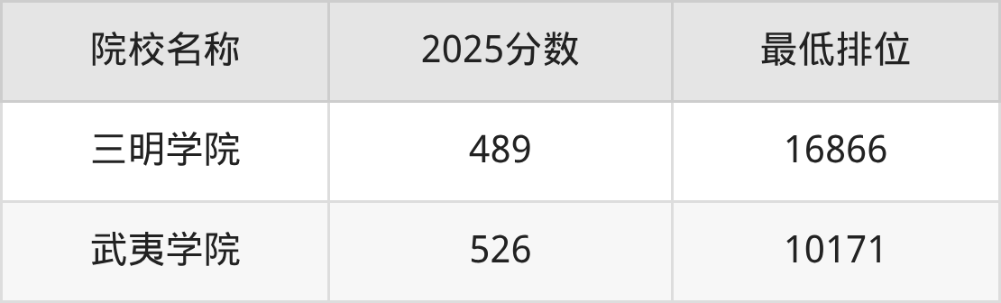 第二梯队(490分及以下):三明学院(489分)
