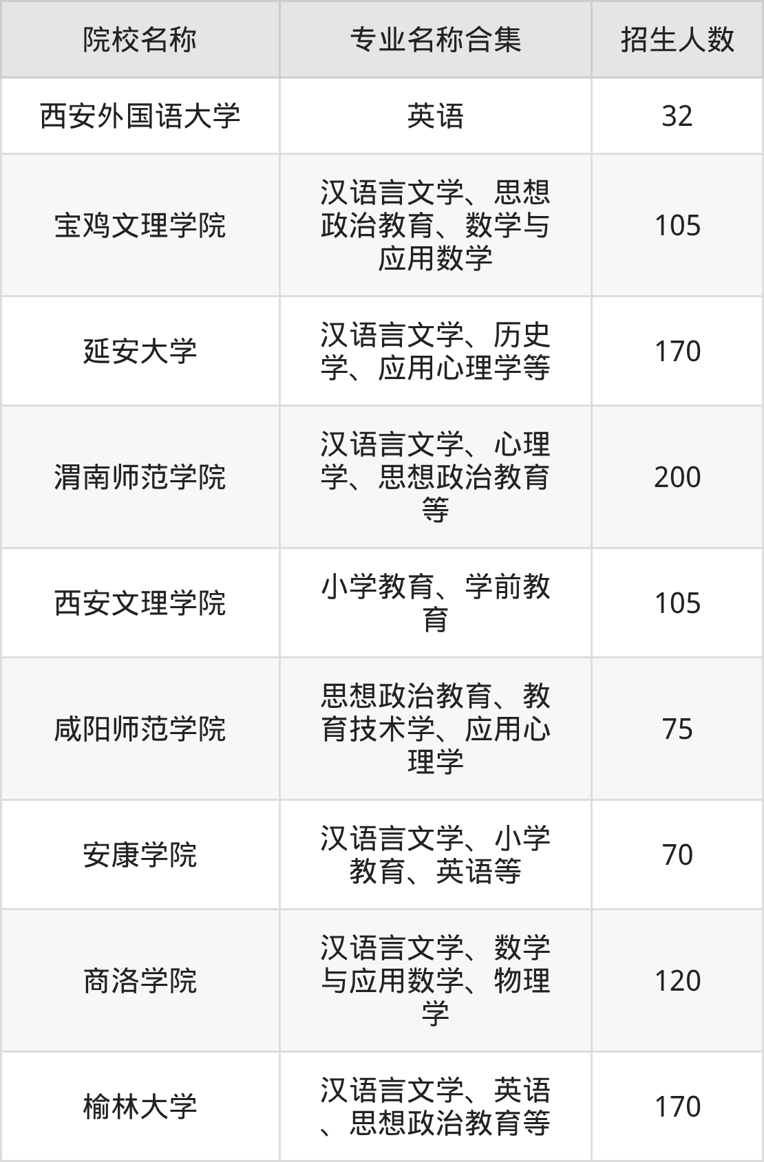 陕西高考地方公费师范生院校完整名单一览表如下。
