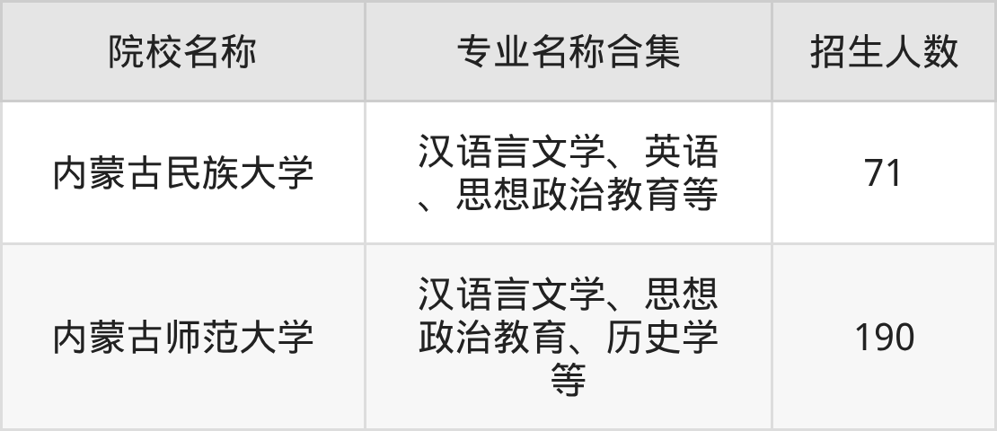内蒙古高考地方公费师范生院校完整名单一览表如下。