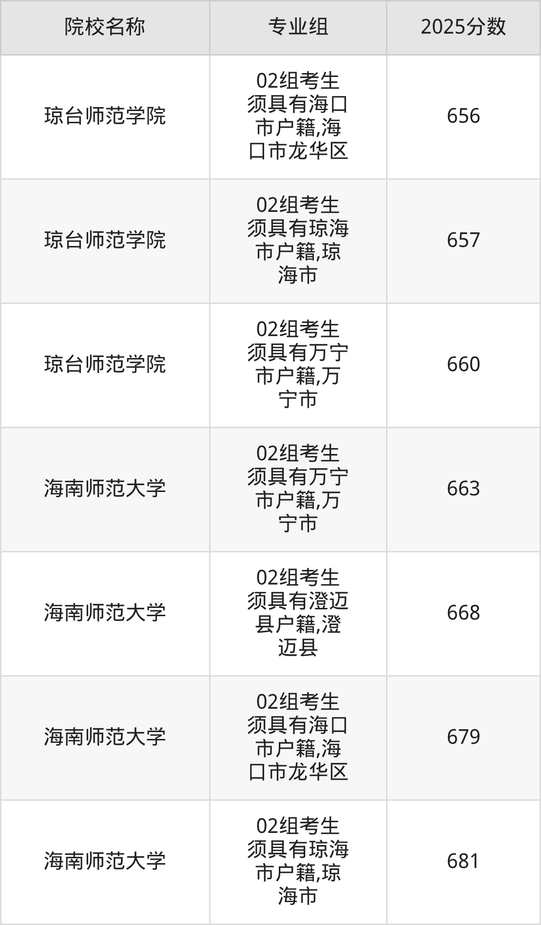 2025年投档数据显示,海南高考地方公费师范生投档线最高681分(海南师范大学02组),超特控线113分。