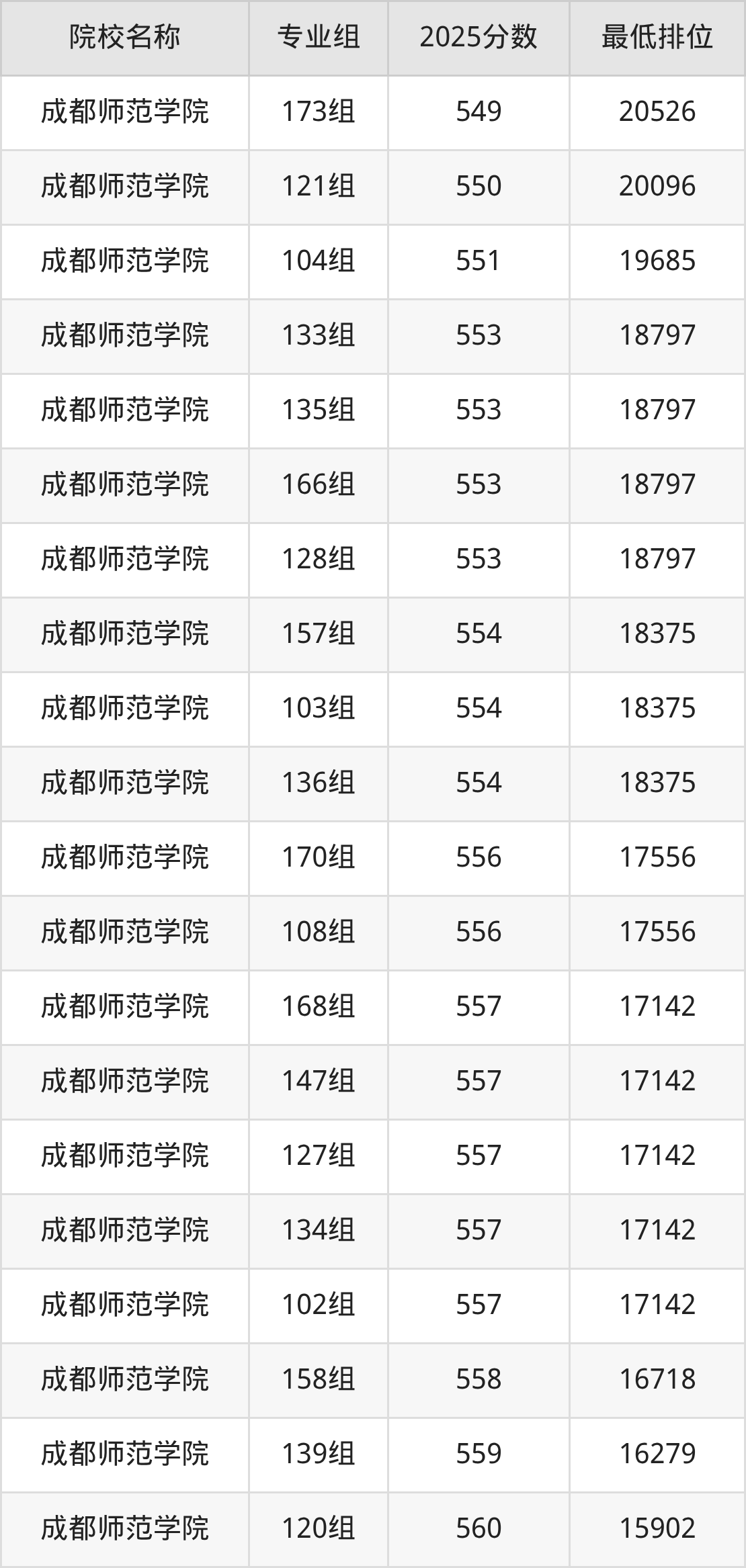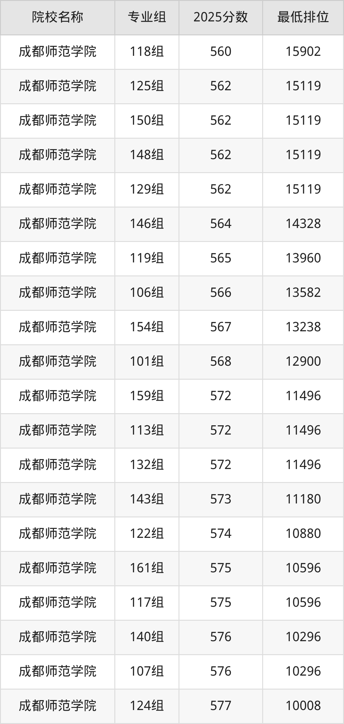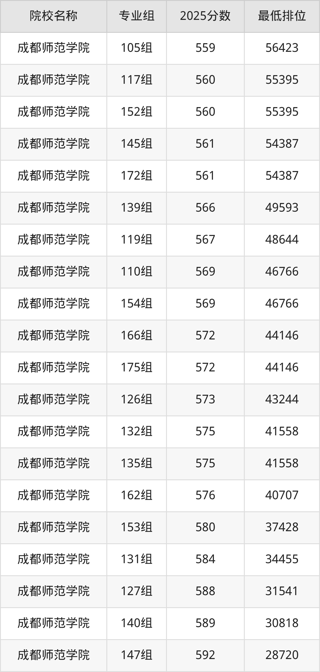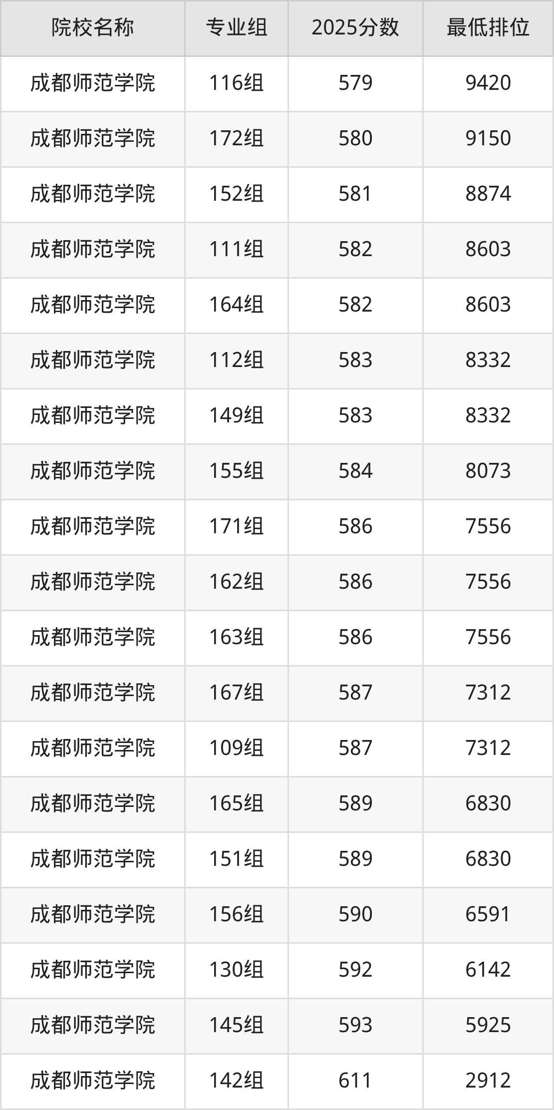 第一梯队(610分+):成都师范学院(142组是611分)