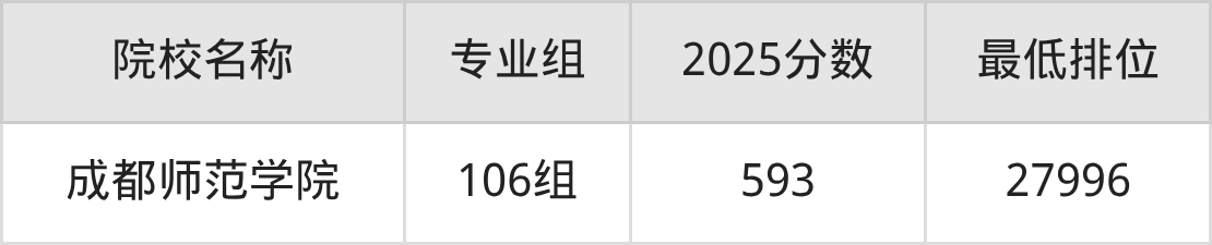 第三梯队(500分及以下):成都师范学院(110组是492分)、西华师范大学(495分)、乐山师范学院(500分)