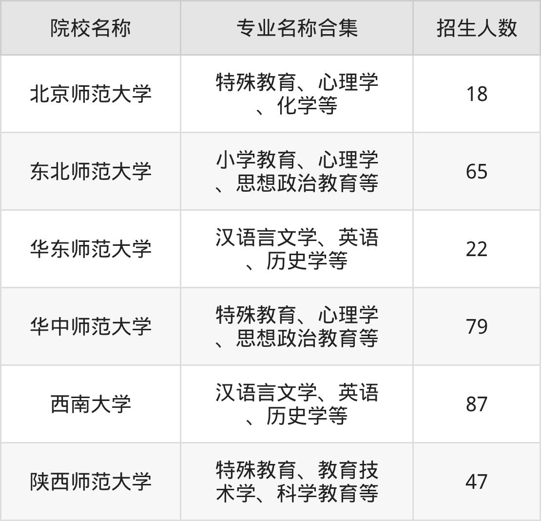 其中,西南大学以87人招生规模居首,华中师范大学79人紧随其后,东北师范大学招65人,构成招生第一梯队。