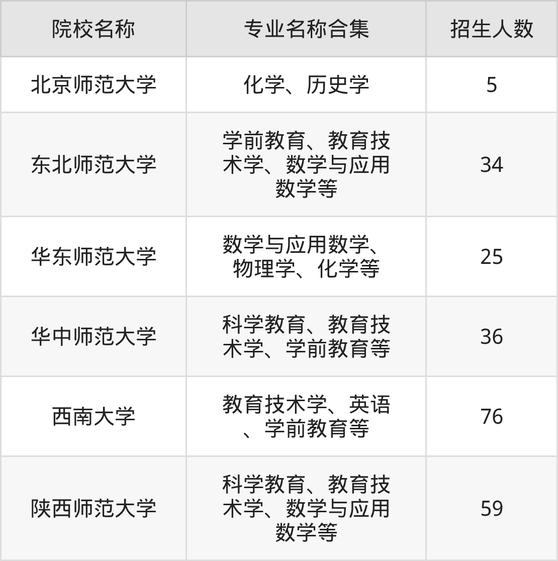 其中,西南大学以76人招生规模居首,陕西师范大学59人紧随其后,华中师范大学招36人,构成招生第一梯队。
