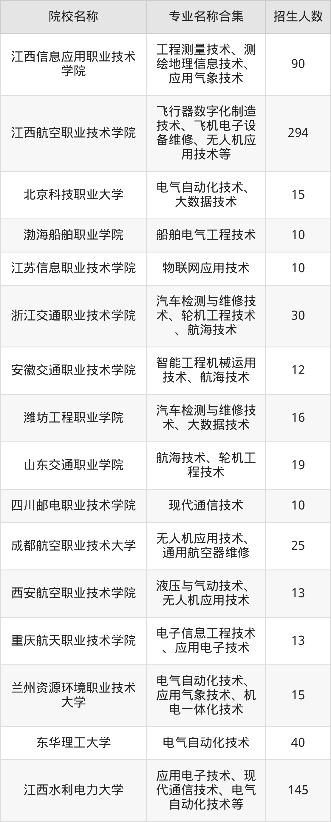 江西:江西信息应用职业技术学院、江西航空职业技术学院、东华理工大学、江西水利电力大学