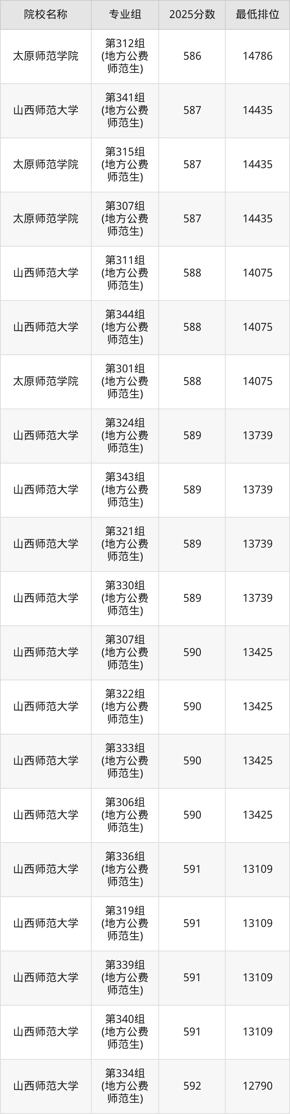 附地方公费师范生院校2025年在山西高考物理类的录取分数线一览表: