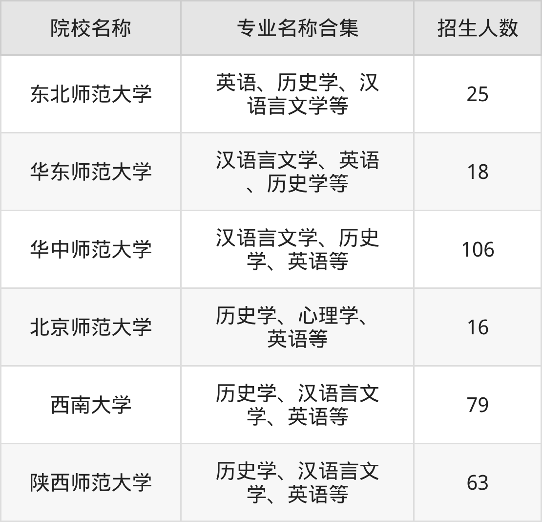 其中,华中师范大学以106人招生规模居首,西南大学79人紧随其后,陕西师范大学招63人,构成招生第一梯队。
